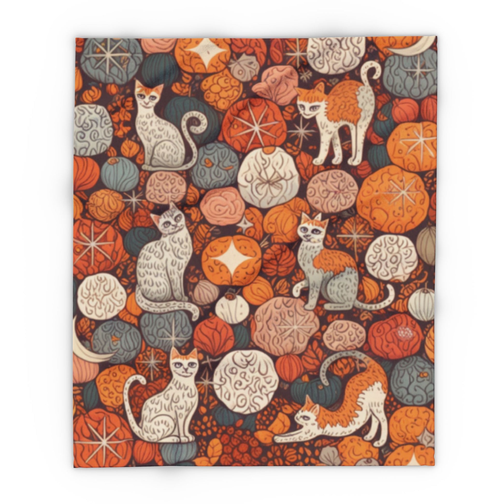 Autumn Cat Pumpkin Blanket, a snuggle blanket for your home,a masterpiece of autumnal decor.