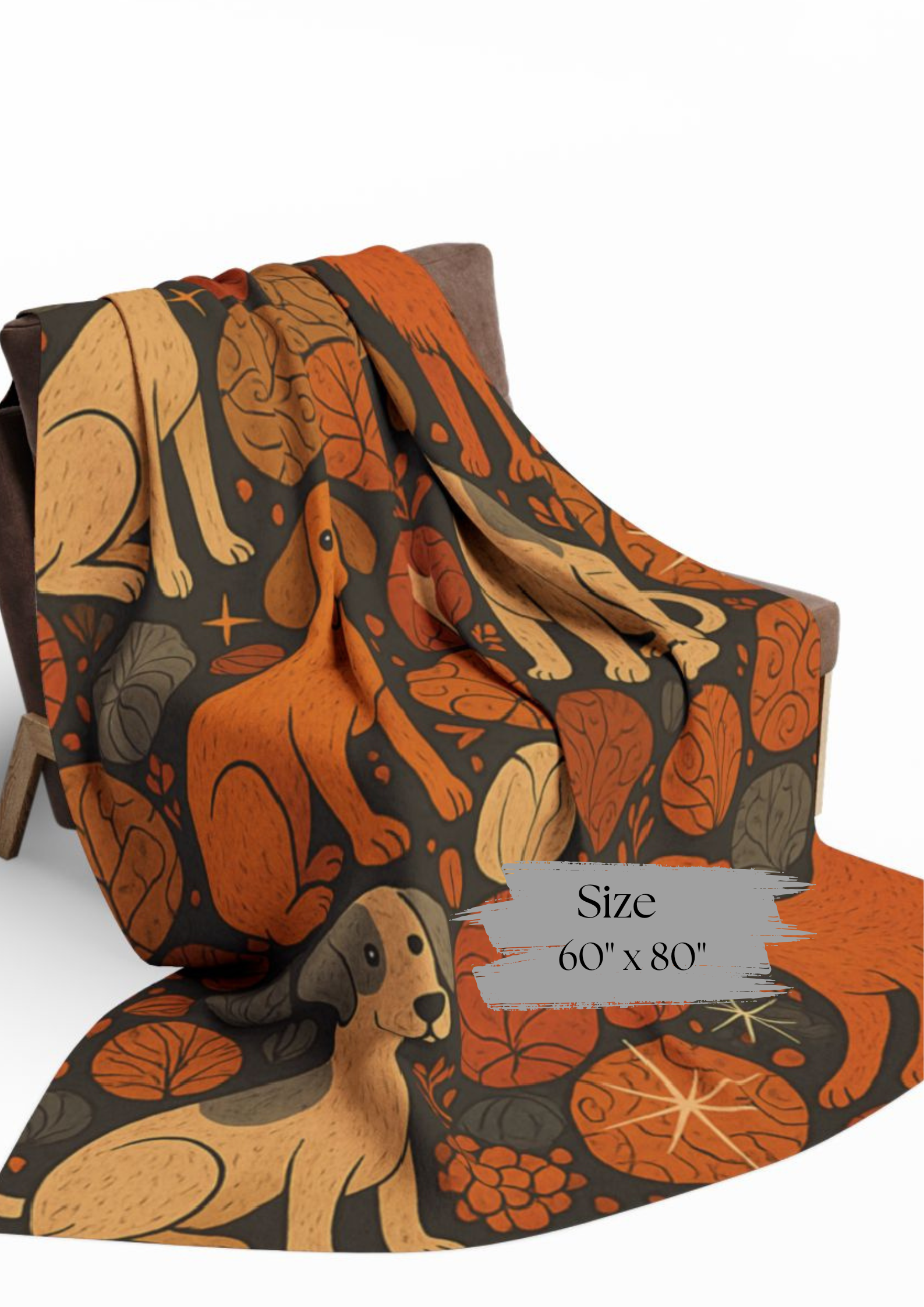 Wrap your senses in the warmth of autumn with our Autumnal Throw Dog Design Blanket. This autumn blanket showcases charming motifs and rich autumnal colors, transforming any space into a cozy haven. It's the perfect snuggle blanket for you and your furry friend, embodying the essence of autumnal decor with its vibrant display of design. Whether draping over furniture as a stylish autumnal throw or enjoying a brisk fall evening on the porch, this cute dog blanket adds the perfect touch of autumn cozy to your home. Embrace the pumpkin blanket vibes and let the season unfold in comfort and style.