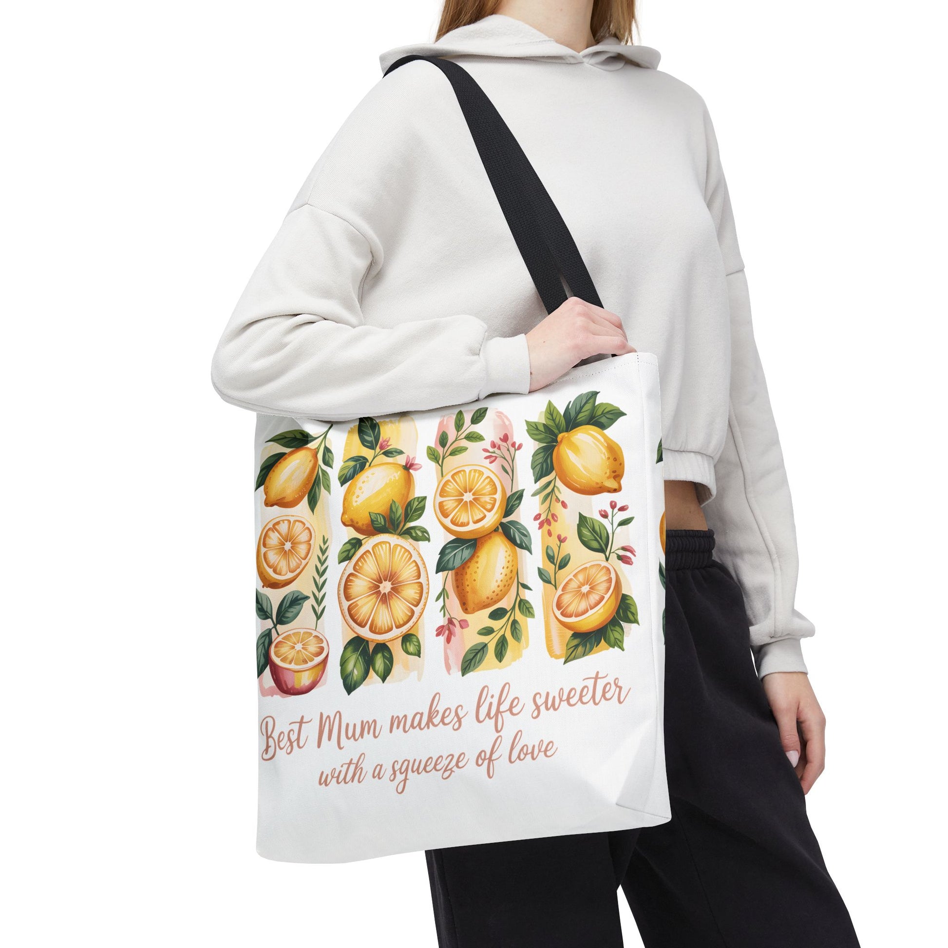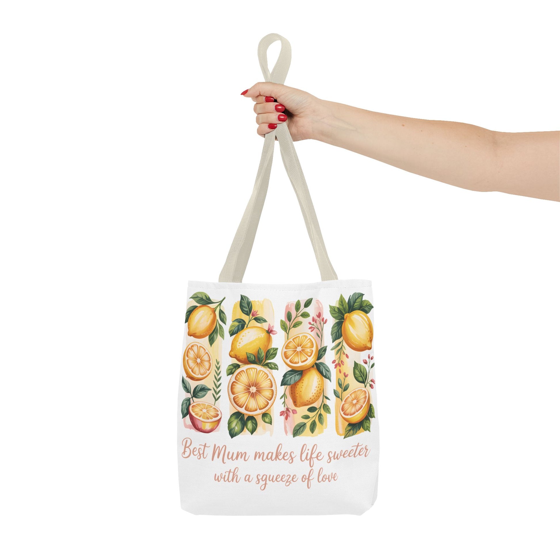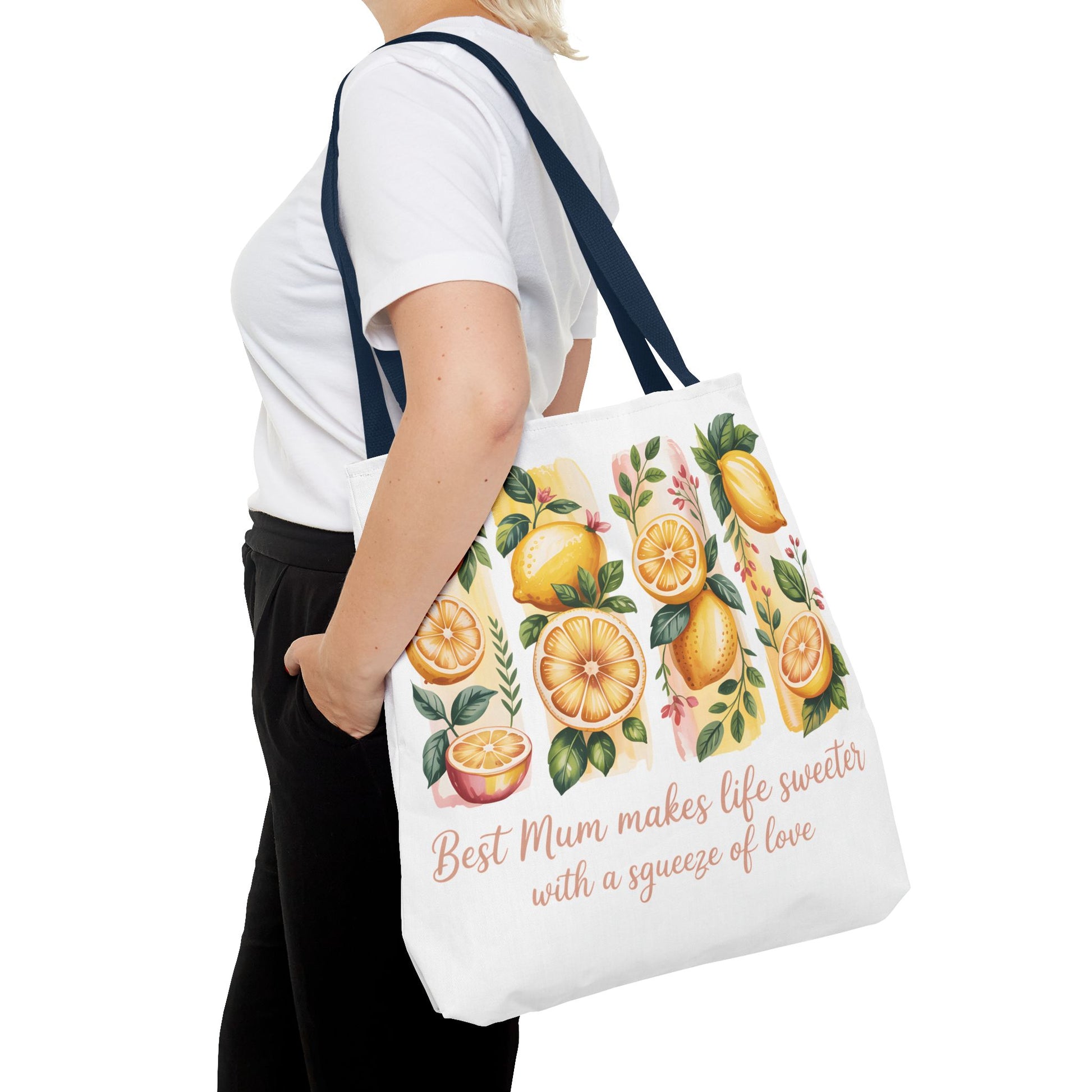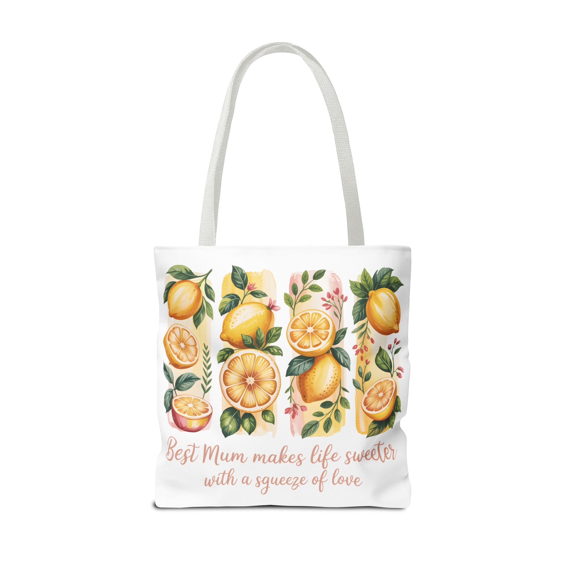 Best Mom Tote Bag, Lemon Print, lemon birthday gift