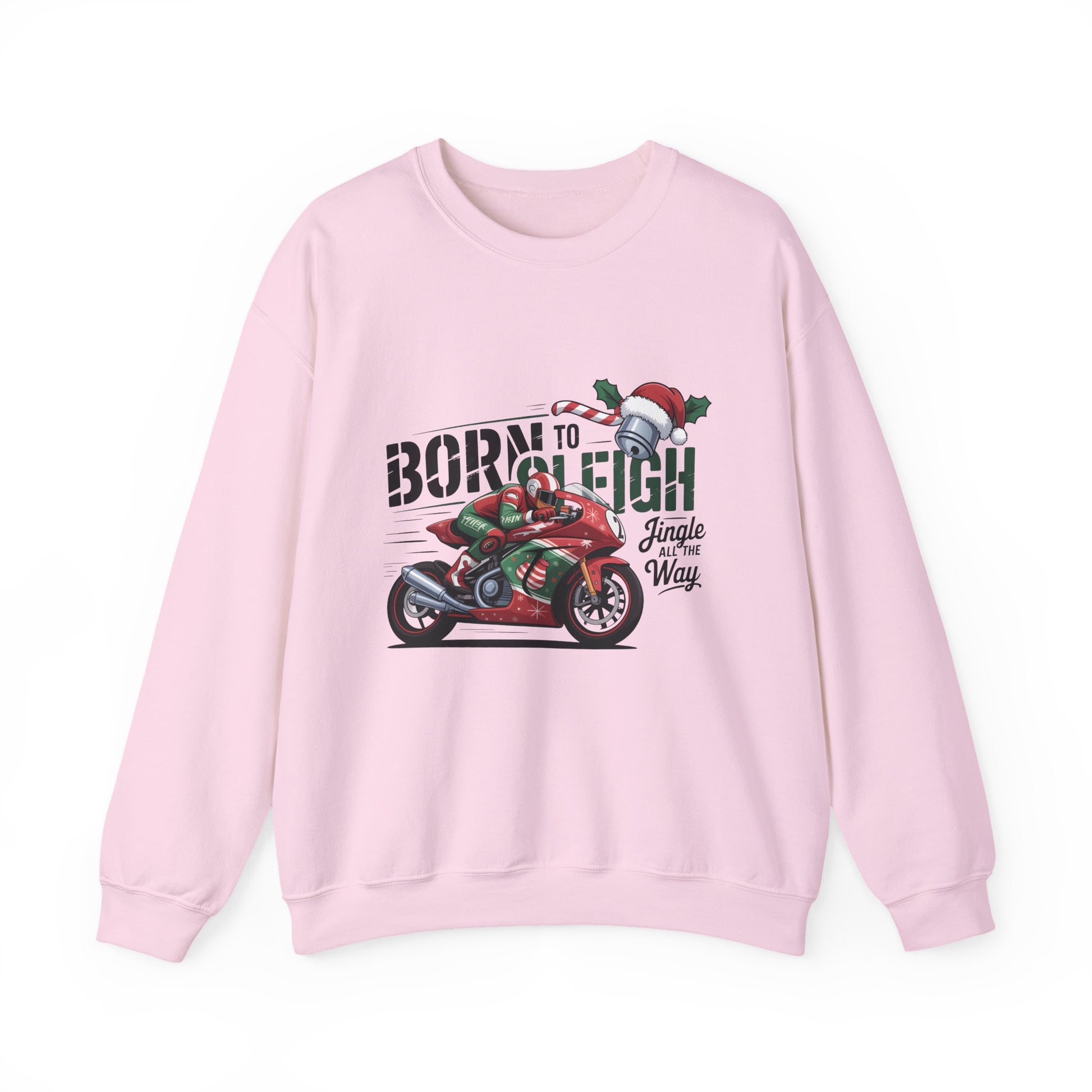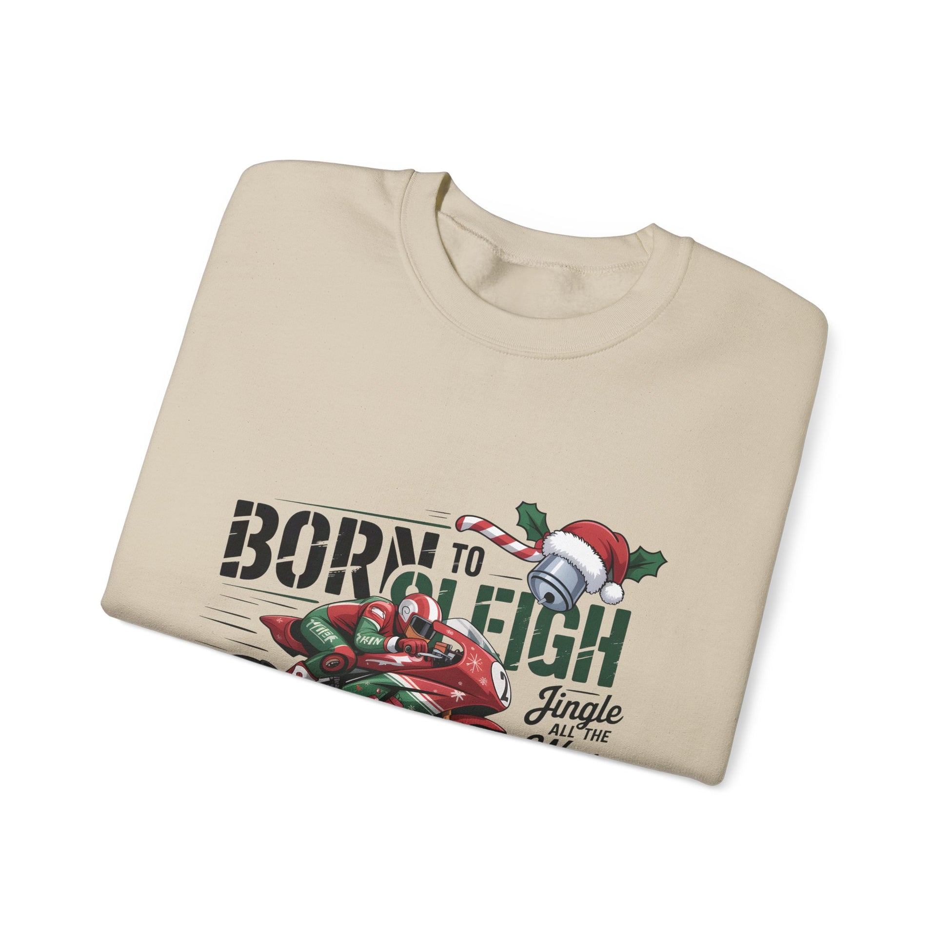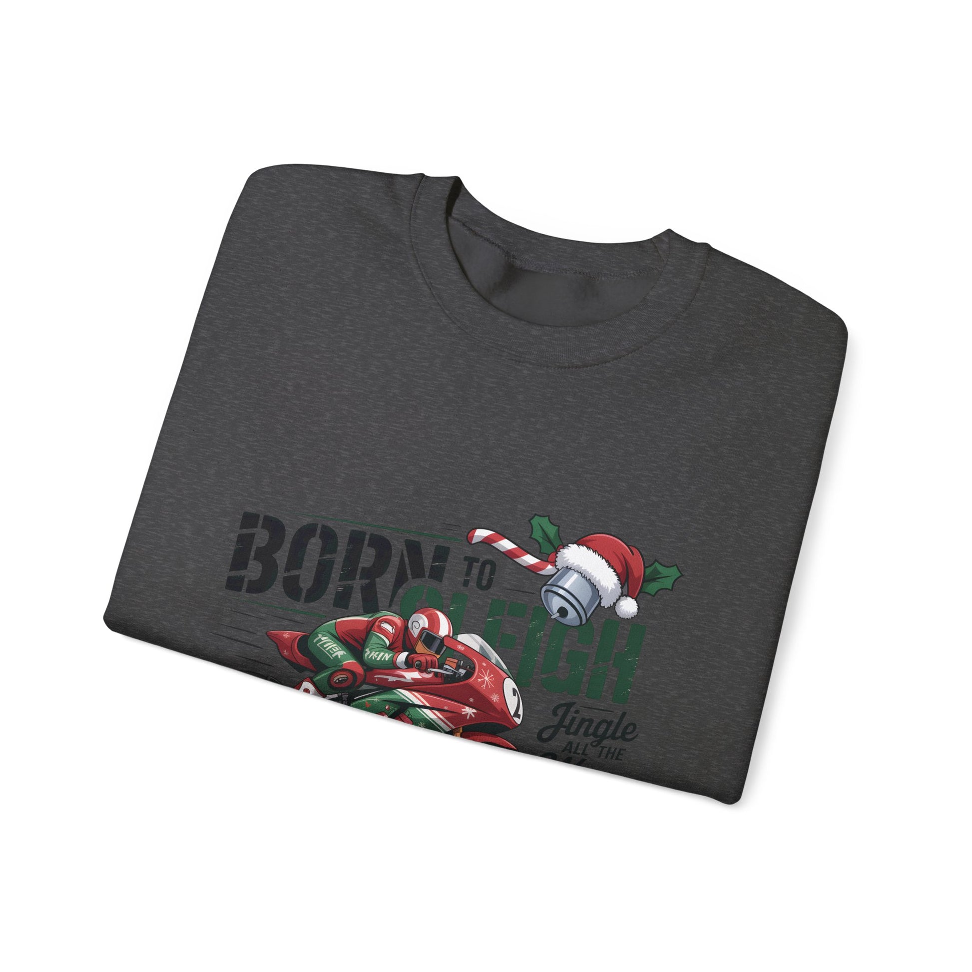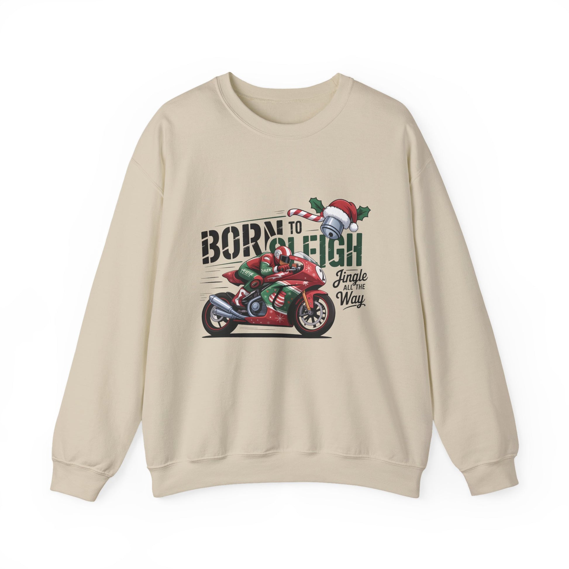 Biker Xmas Jumper, Born To Sleigh Jingle All the Way, this motorcycle sweater is a must-have for bike lover gifts.