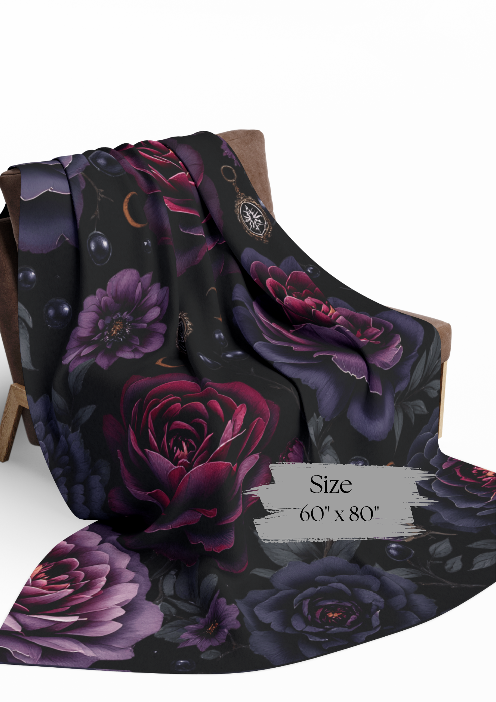 Black floral Fleece Blanket gothic home decor ,winter warm throw