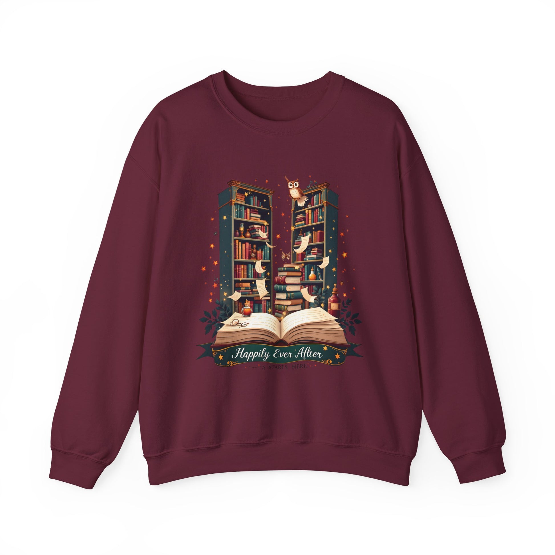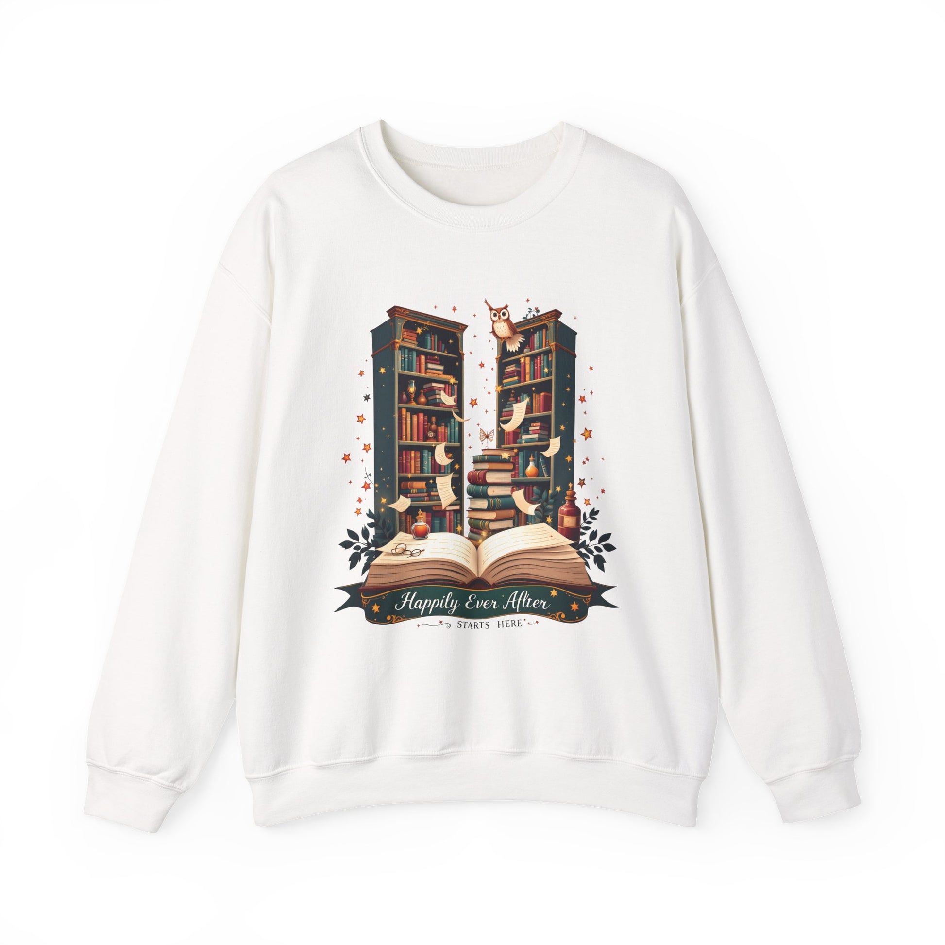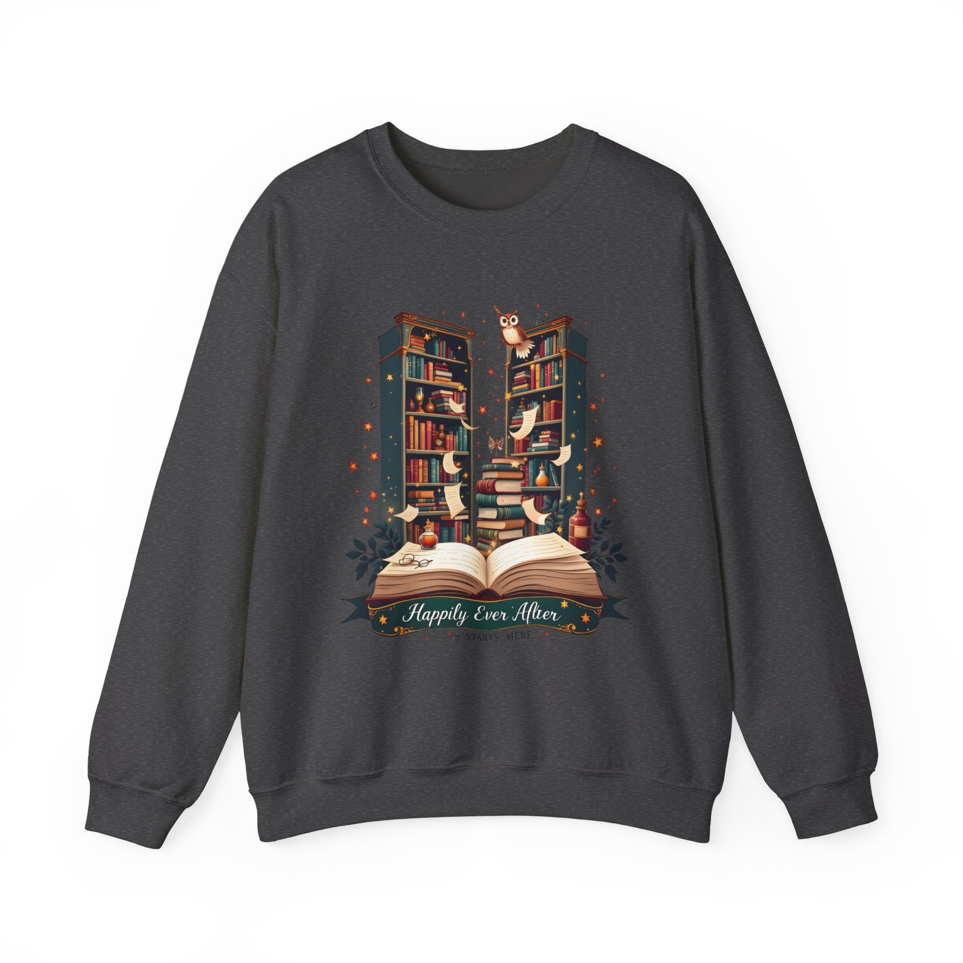 Embrace comfort and creativity with this unisex heavy blend crewneck sweatshirt, perfect for book lovers and cozy evenings. Featuring a charming design of bookshelves and an open book, this sweatshirt brings a whimsical touch to your wardrobe. Ideal for snuggling up with your favorite novel or enjoying a casual day out, it radiates warmth and artistic flair, making it a great addition to any outfit. This sweatshirt is perfect for gift-giving during holidays or special occasions like birthdays, anniversaries, or even book club gatherings. Whether you're celebrating a cozy night in or an exciting literary event, this stylish piece fits seamlessly into the joyful moments of your life.
