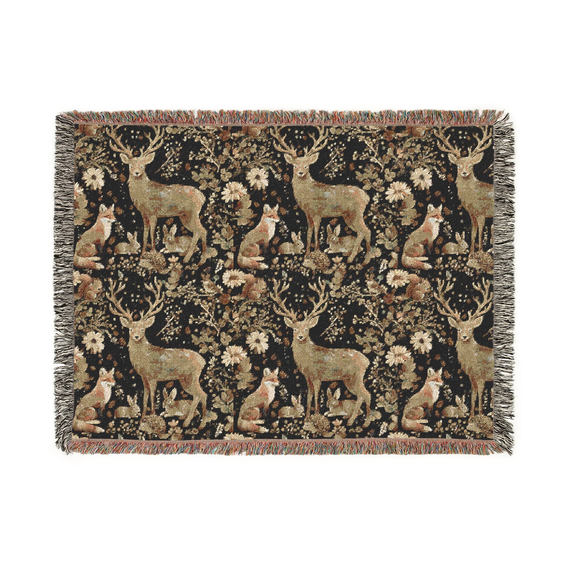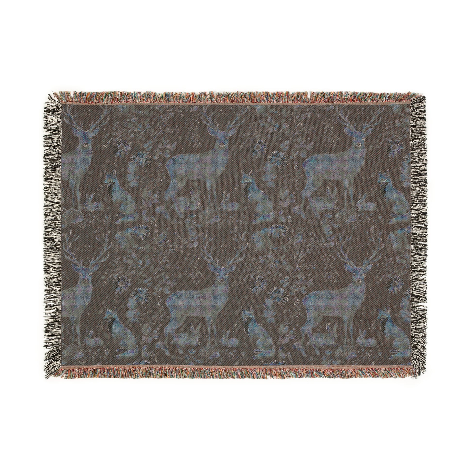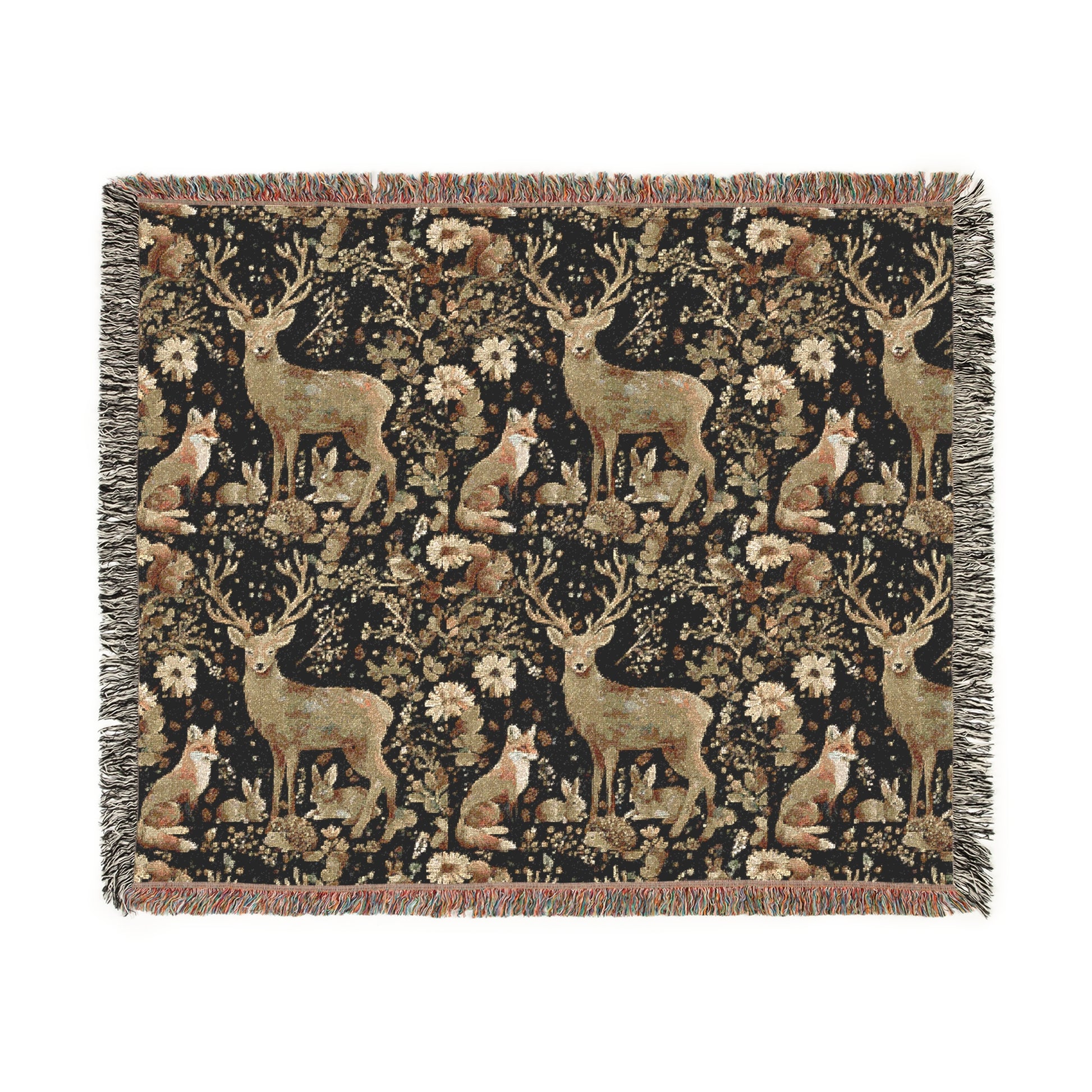 Cozy Nature-Inspired Woven Blanket, Rustic Decor, Gifts for Campers, Deer Tapestry, Warm Throw for Home