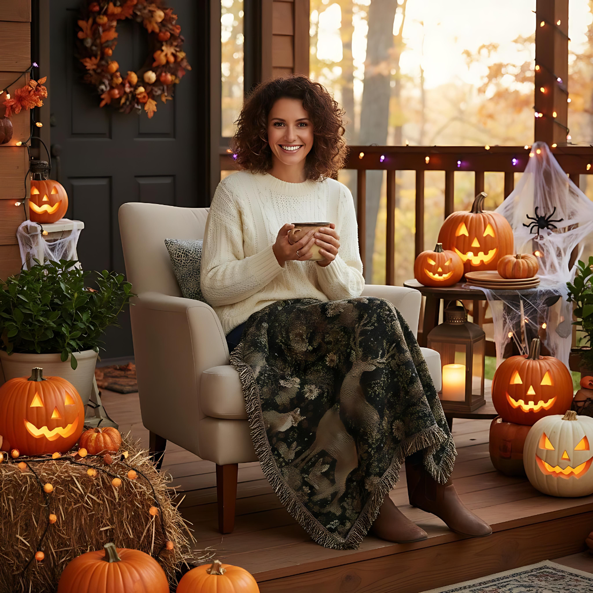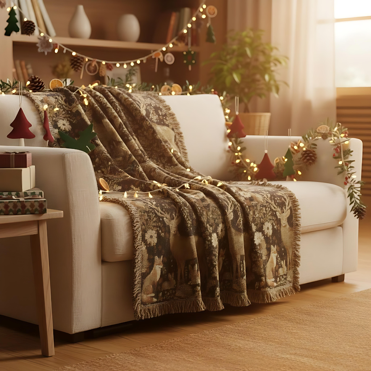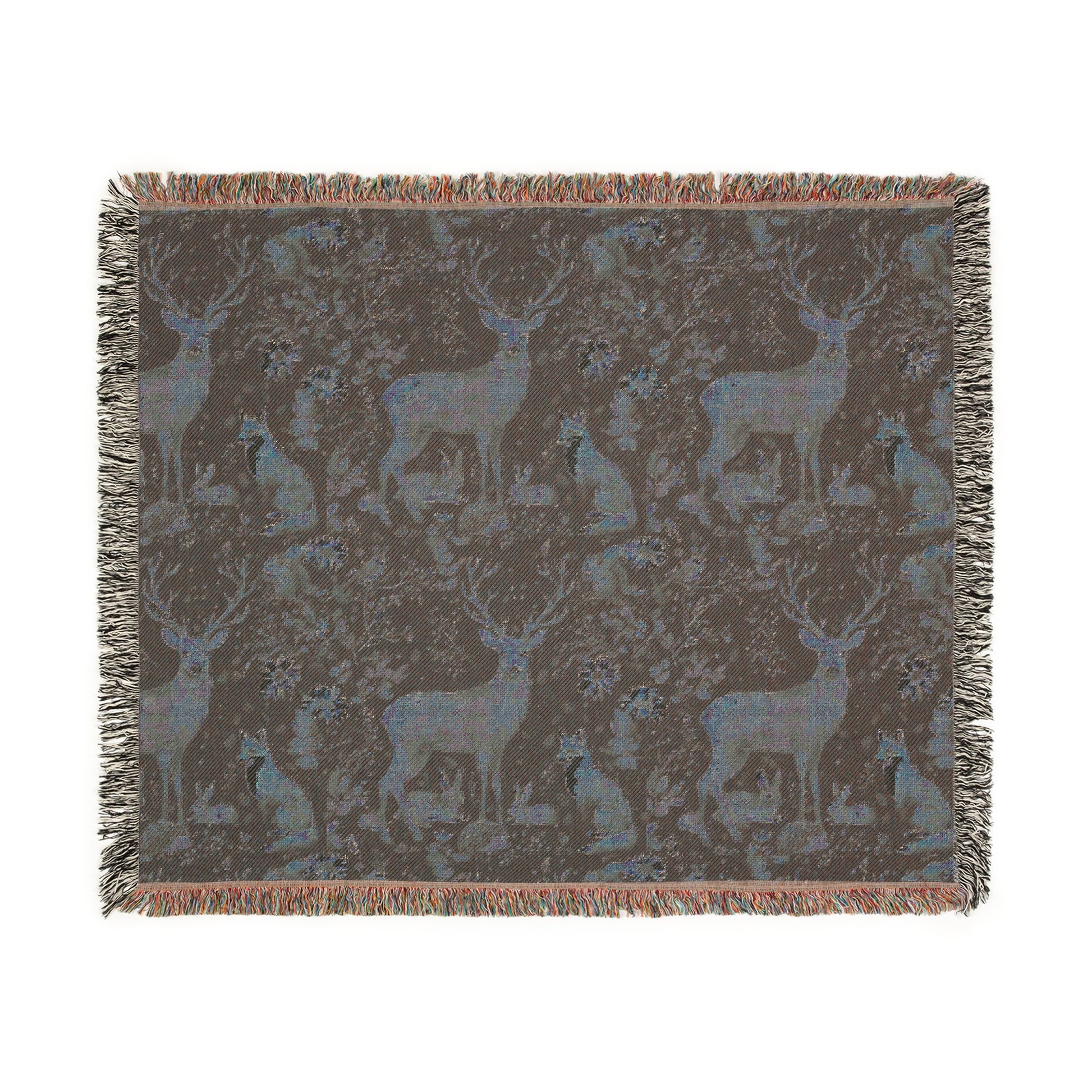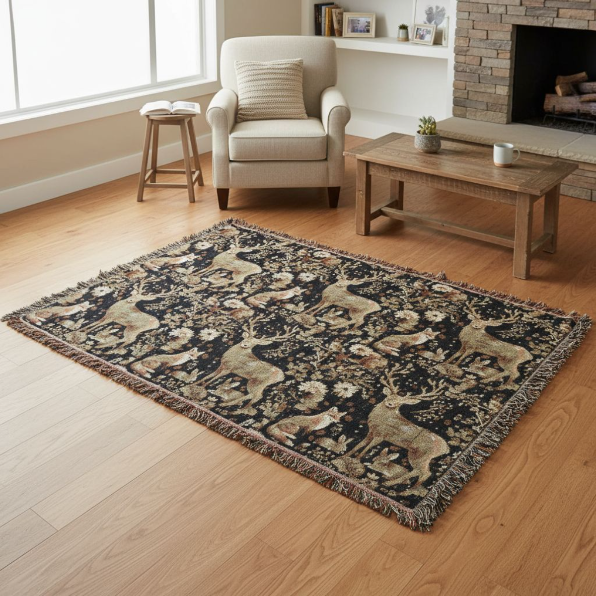 Cozy Nature-Inspired Woven Blanket, Rustic Decor, Gifts for Campers, Deer Tapestry, Warm Throw for Home