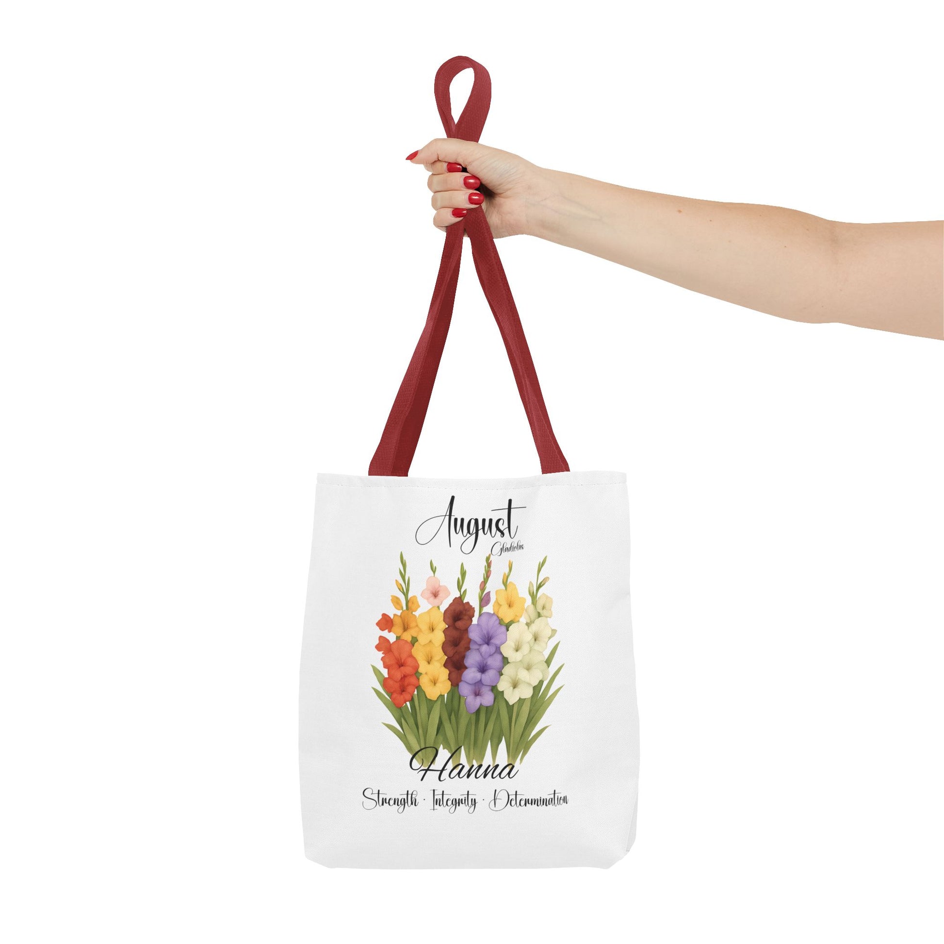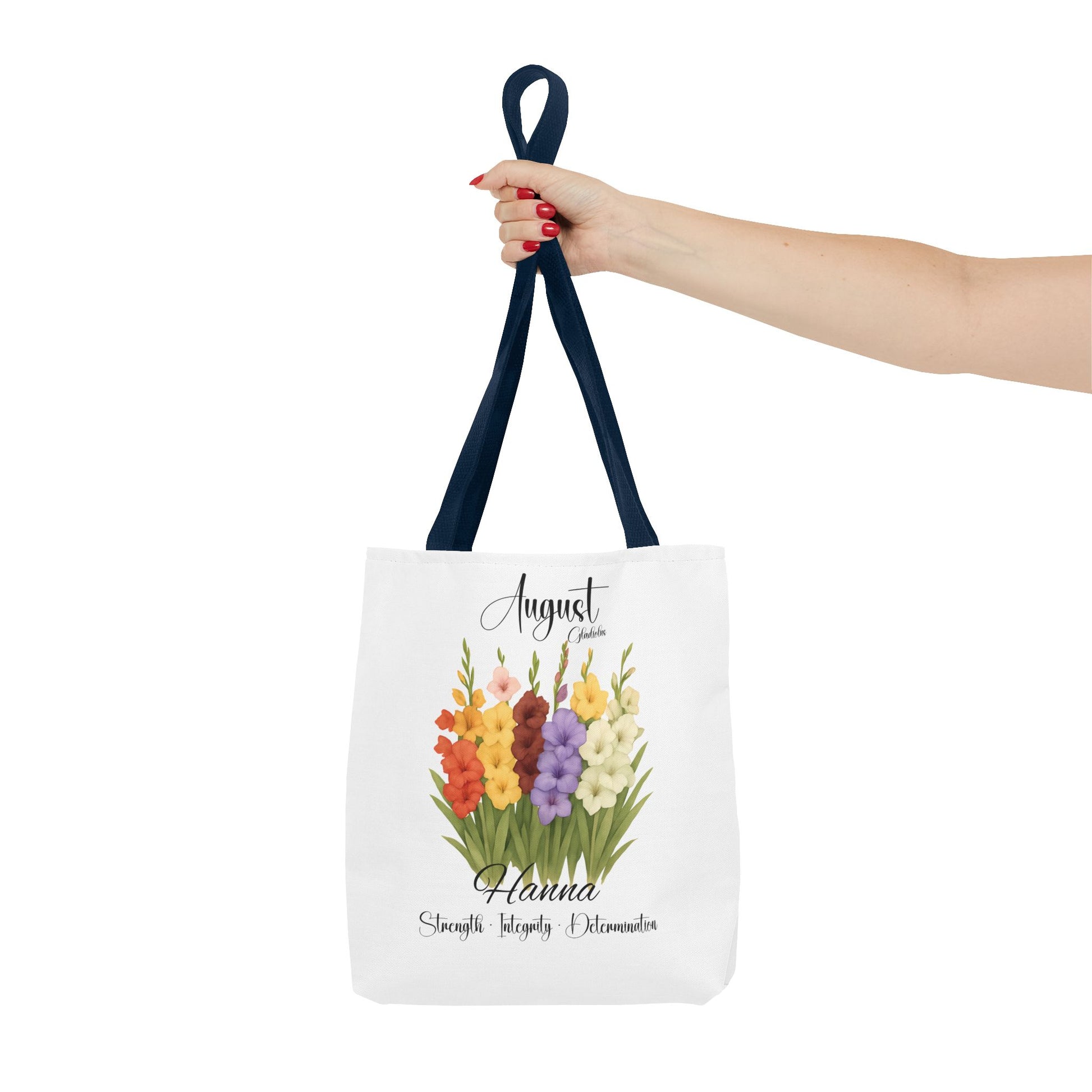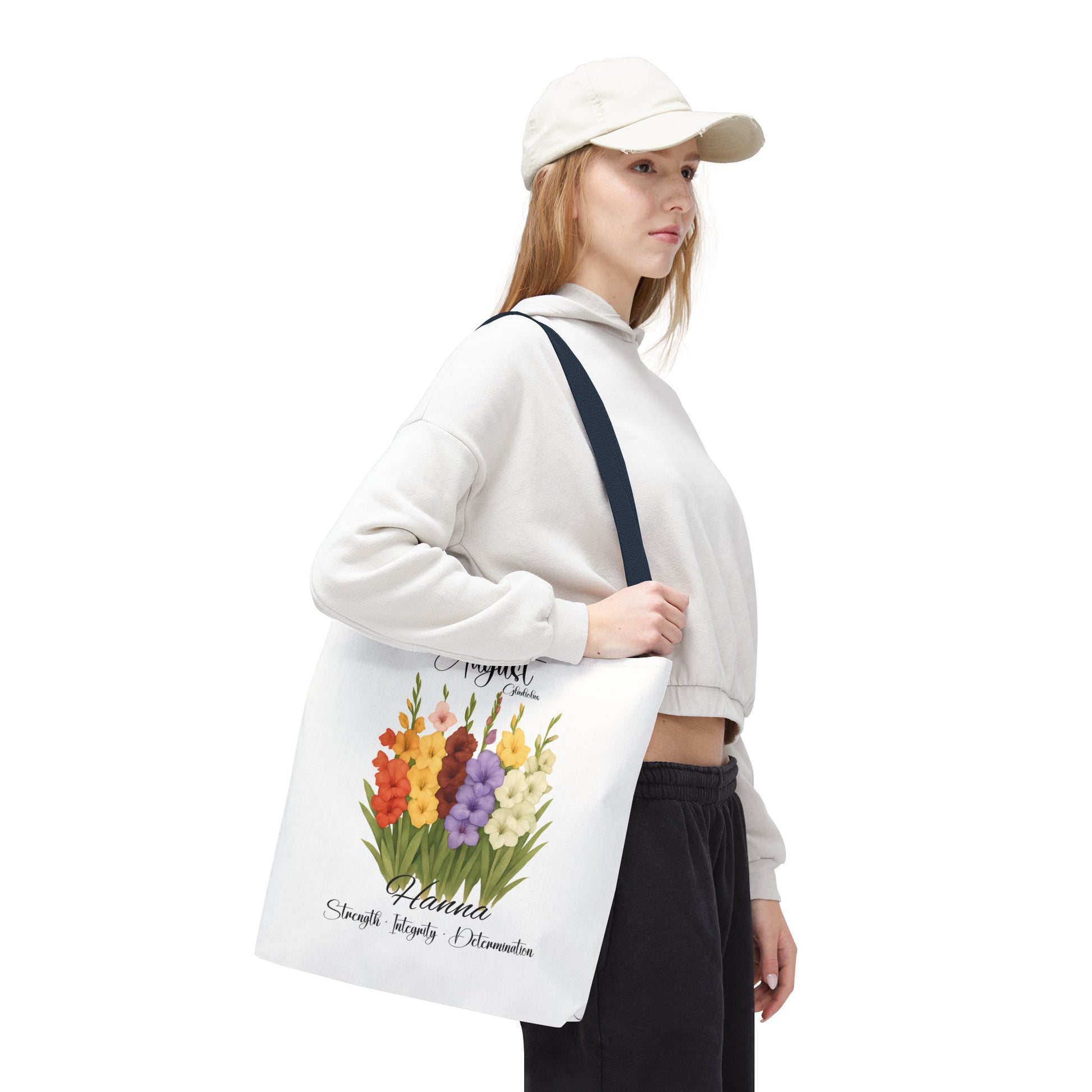 Celebrate her special milestones with our Personalized Birth Month Flower Tote Bag for Her — a meaningful gift for milestone birthdays, best friends, bridesmaids, or as a botanical keepsake. Crafted from lightweight yet sturdy materials, this charming tote features a delicate Gladiolus, symbolizing Strength • Integrity • Determination, beautifully printed alongside elegant script. The design includes the month at the top, and customizable space beneath for a name and important dates, making it a truly personalized keepsake.
