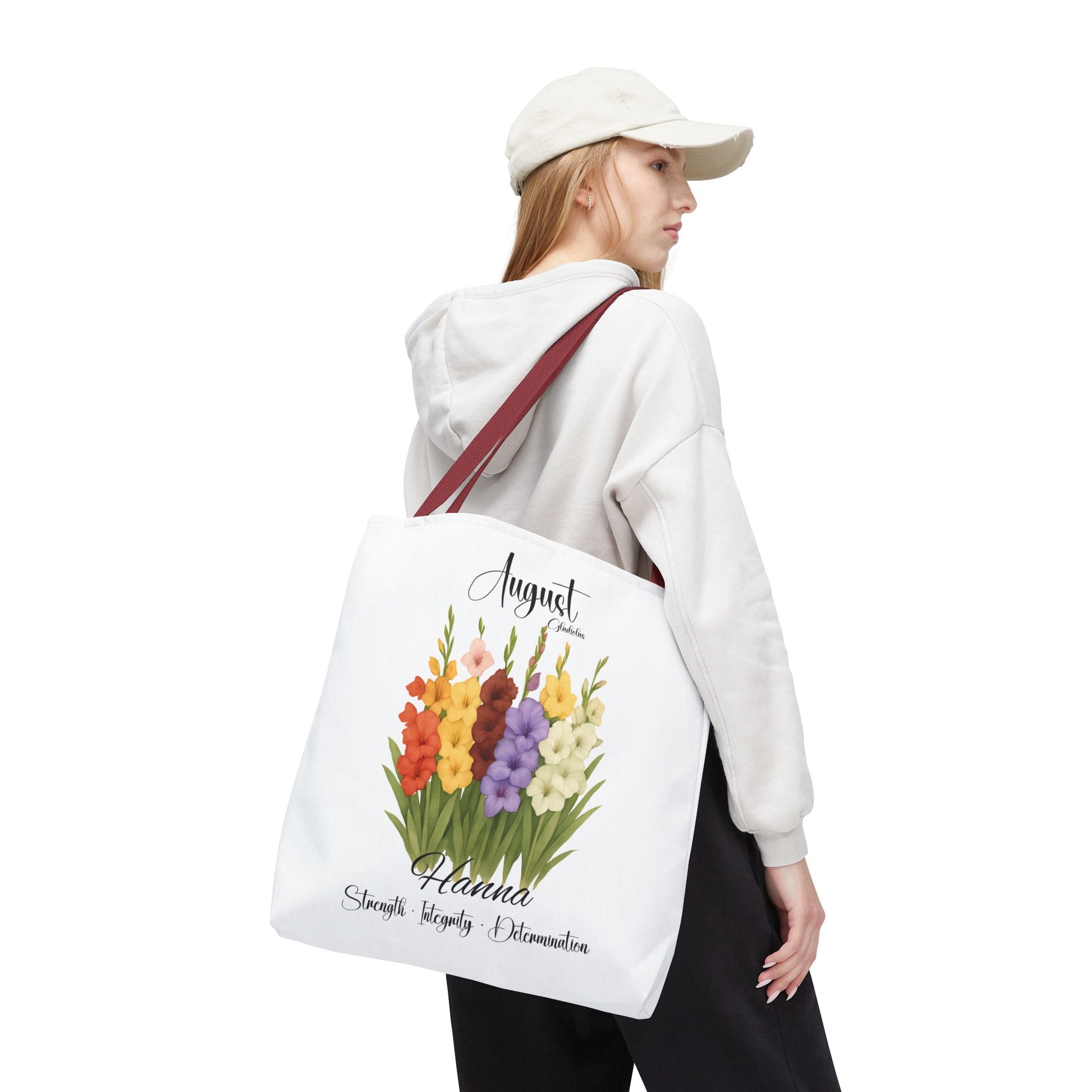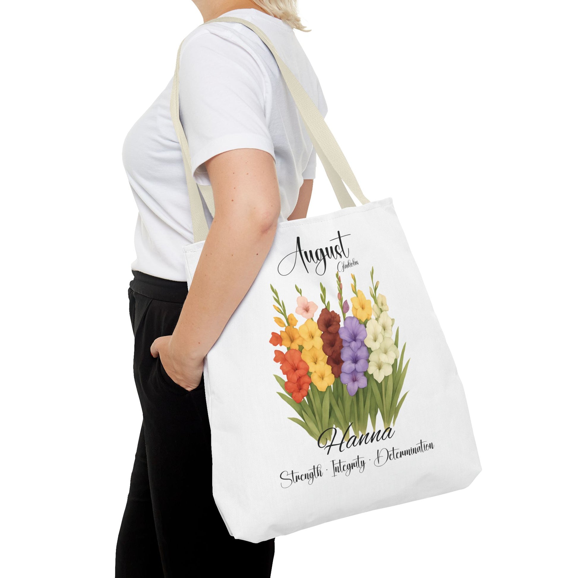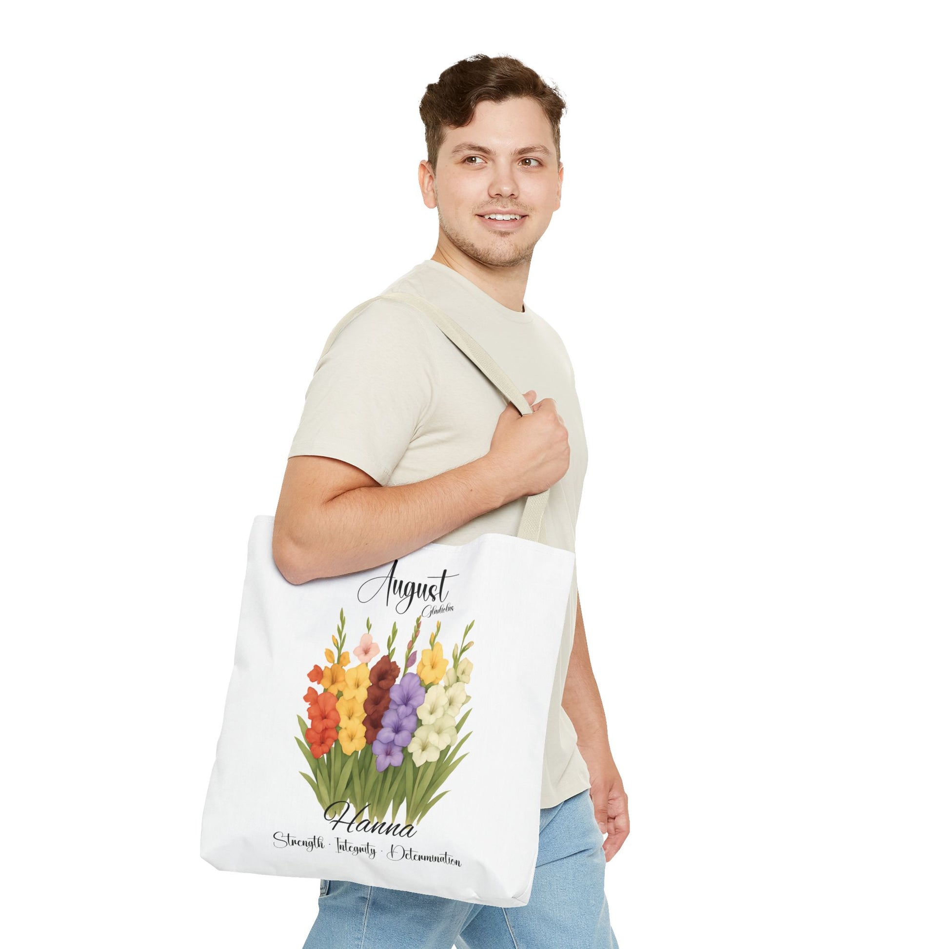 Celebrate her special milestones with our Personalized Birth Month Flower Tote Bag for Her — a meaningful gift for milestone birthdays, best friends, bridesmaids, or as a botanical keepsake. Crafted from lightweight yet sturdy materials, this charming tote features a delicate Gladiolus, symbolizing Strength • Integrity • Determination, beautifully printed alongside elegant script. The design includes the month at the top, and customizable space beneath for a name and important dates, making it a truly personalized keepsake.