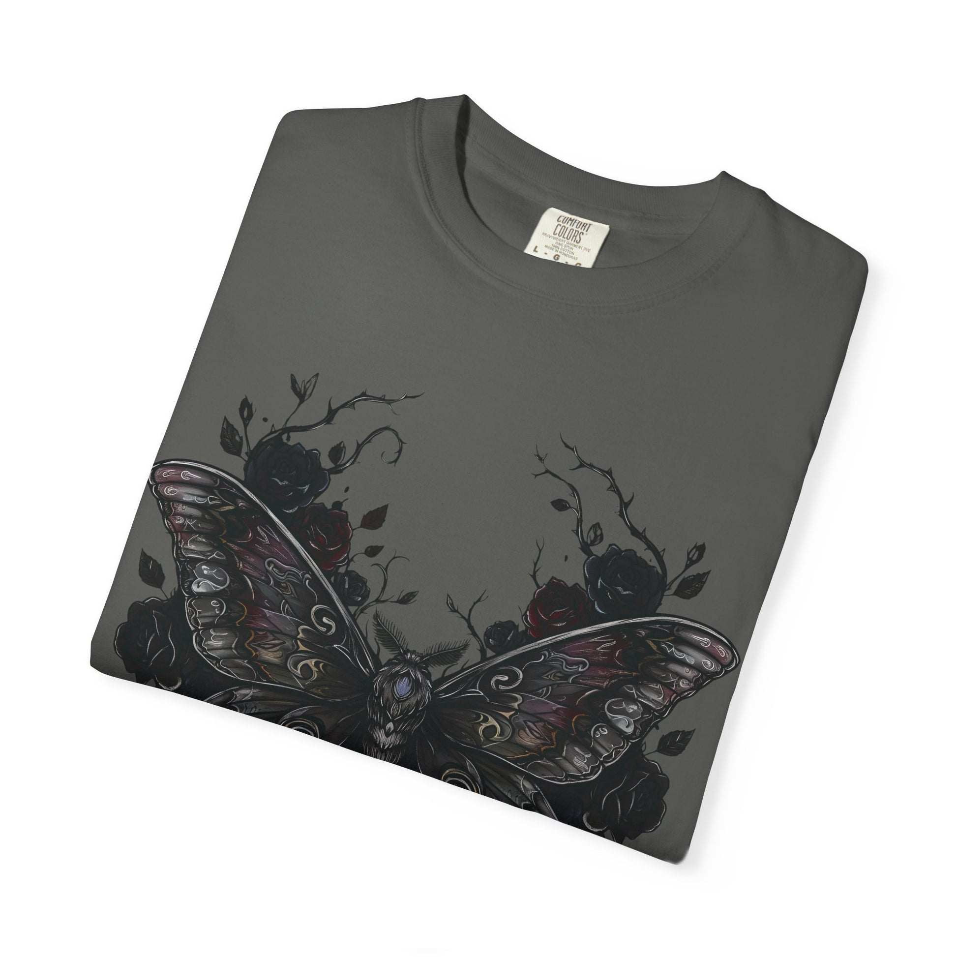 Death Moth Gothic Apparel | Dark Aesthetic Comfort Colours Tee | Alternative Goth T-Shirt