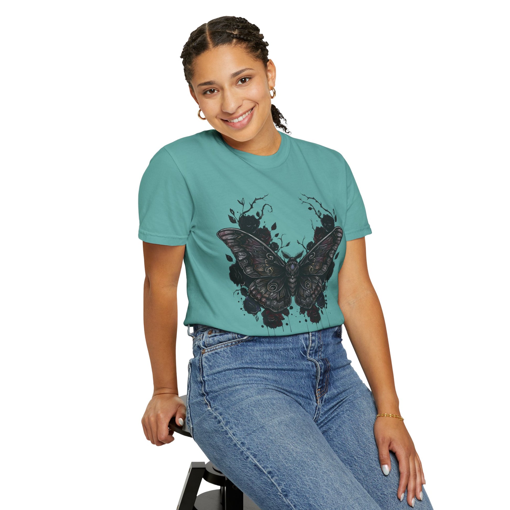 Embrace your dark aesthetic with our Death Moth Gothic Apparel | Dark Aesthetic Comfort Colours Tee | Alternative Goth T-Shirt. This striking graphic tee features a detailed death moth design, perfect for fans of gothic fashion and alternative style. Crafted for both comfort and style, this unisex T-shirt is ideal for expressing your unique vibe whether you're heading to a goth event, celebrating Halloween, or adding a dark touch to your everyday wardrobe.