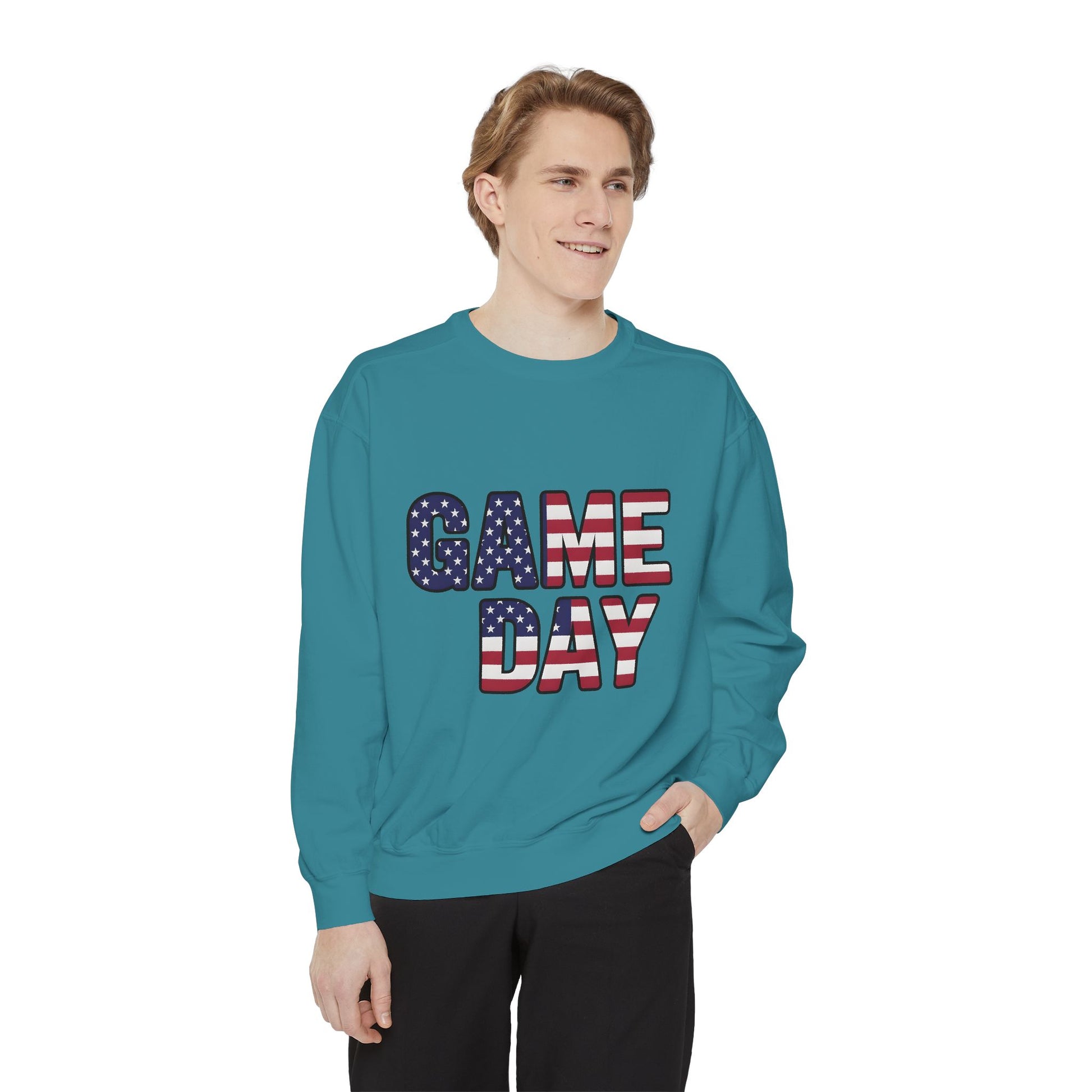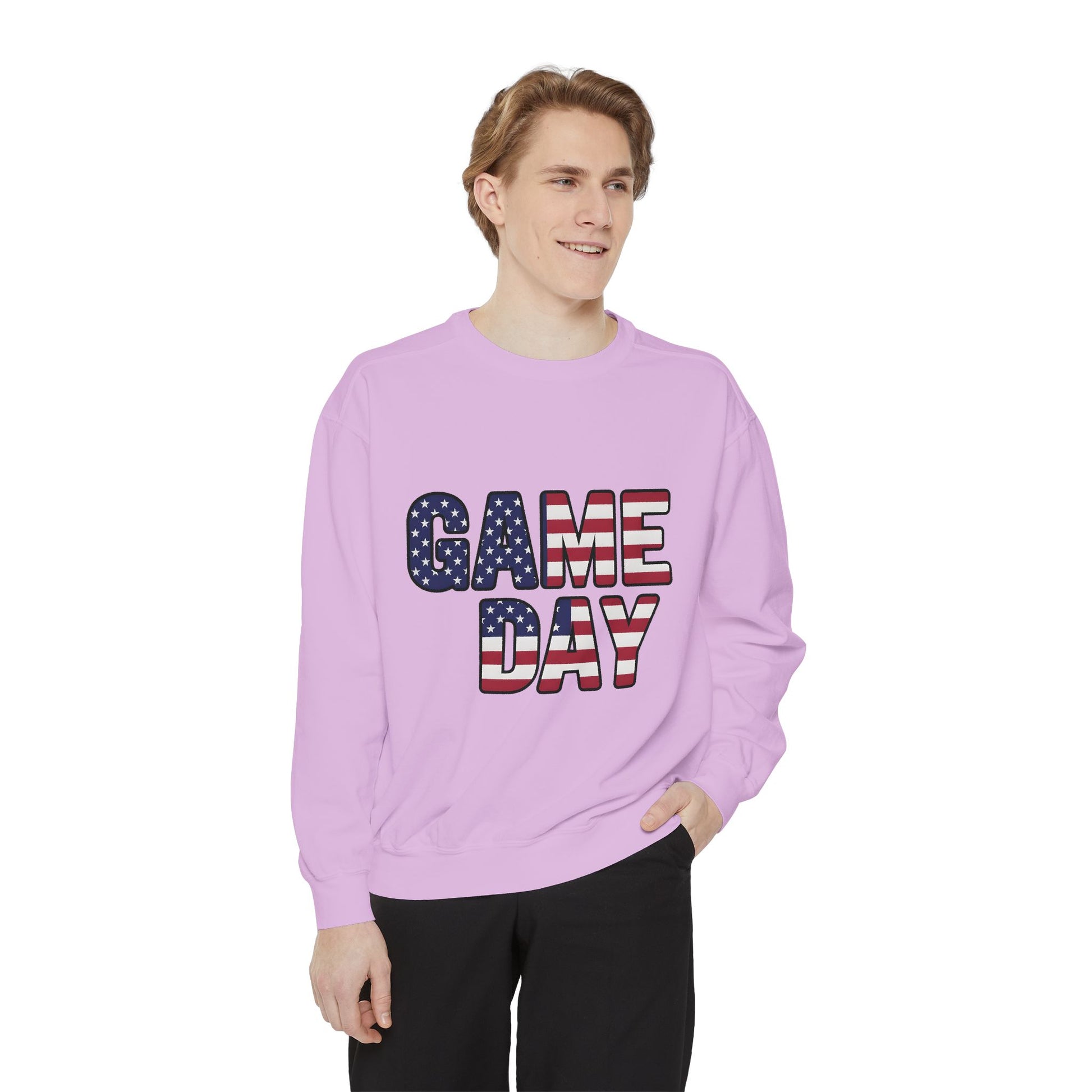 Game Day Comfort Colors sweatshirt, patriotic sweater, sports apparel.