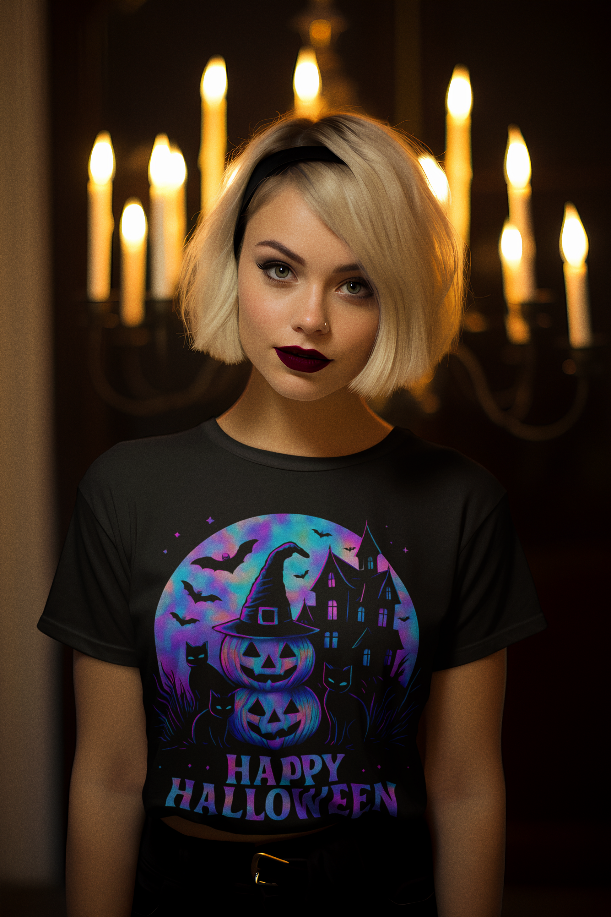 Step into the whimsical world of Halloween with our captivating Happy Halloween Holographic T-Shirt, where each glance reveals a mesmerizing blend of vibrant hues. This holographic clothing masterpiece artfully transforms the classic jack o lantern tee into a dazzling display, featuring pumpkin designs that shimmer with every movement. Perfect for both mens holographic and womens halloween wardrobes, this holographic tee brings the spirit of halloweentown to life with its haunted mansion charm and playful jackolantern graphics. Whether you're attending a spooky soirée or simply embracing the season, this holographic pumpkin wonder ensures you stand out in style.