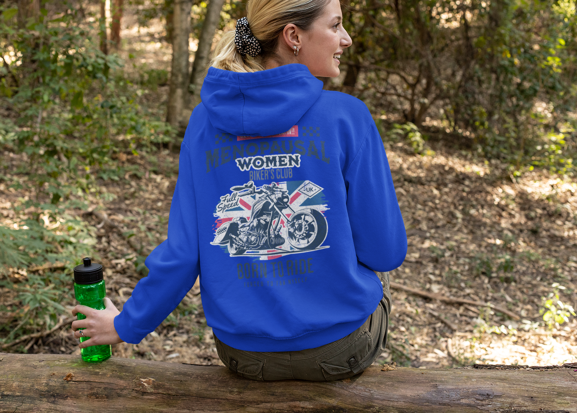 Introducing the Menopausal Women Bikers Club Fullzip Hoodie—a symphony of humor and style crafted just for the spirited rider. Infused with cheeky menopause humor, this biker hoodie makes the perfect menopause gift for the free-spirited woman who loves to ride. The cozy, zip up hoodie design offers convenience and comfort, while the edgy, motorcycle clothes inspired look adds an extra rev to your wardrobe. Whether you're cruising down the open road or simply enjoying a breezy day out, this funny menopause zipup hoodie is your trusty companion. Embrace the ride with confidence and style in this uniquely spirited full zip hoodie.