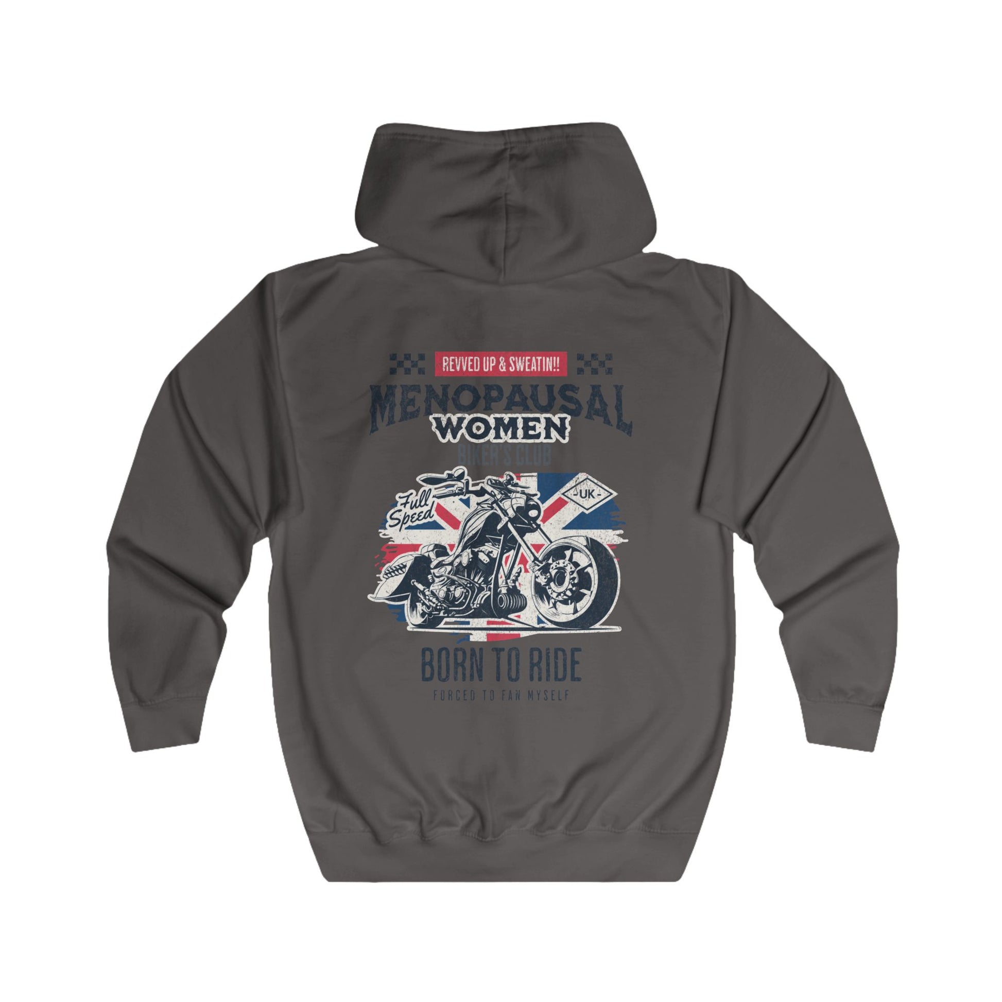 Menopausal Women's Biker Club Full Zip Hoodie, Menopause Humor, Zipup Hoodie, Motorcycle Clothes, Rider Hoodie, Menopause Gift