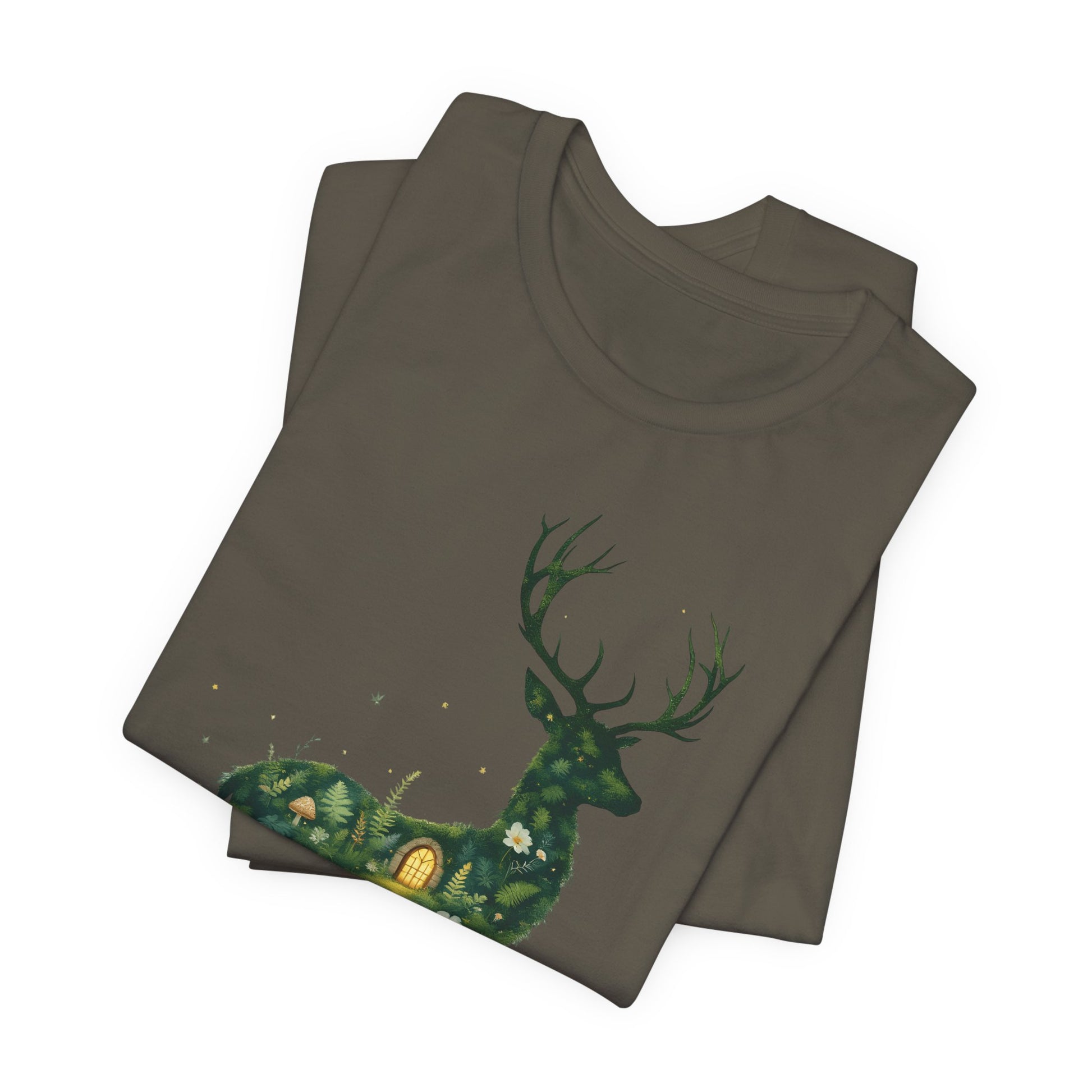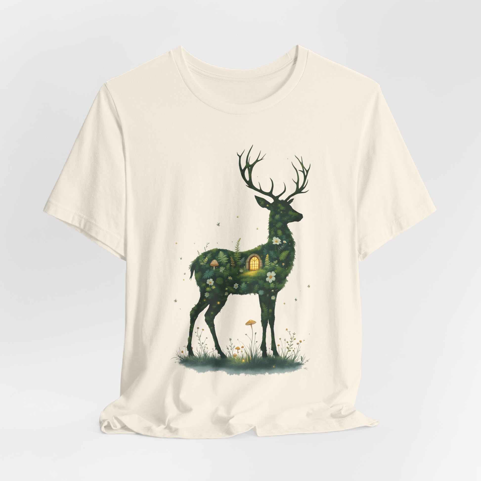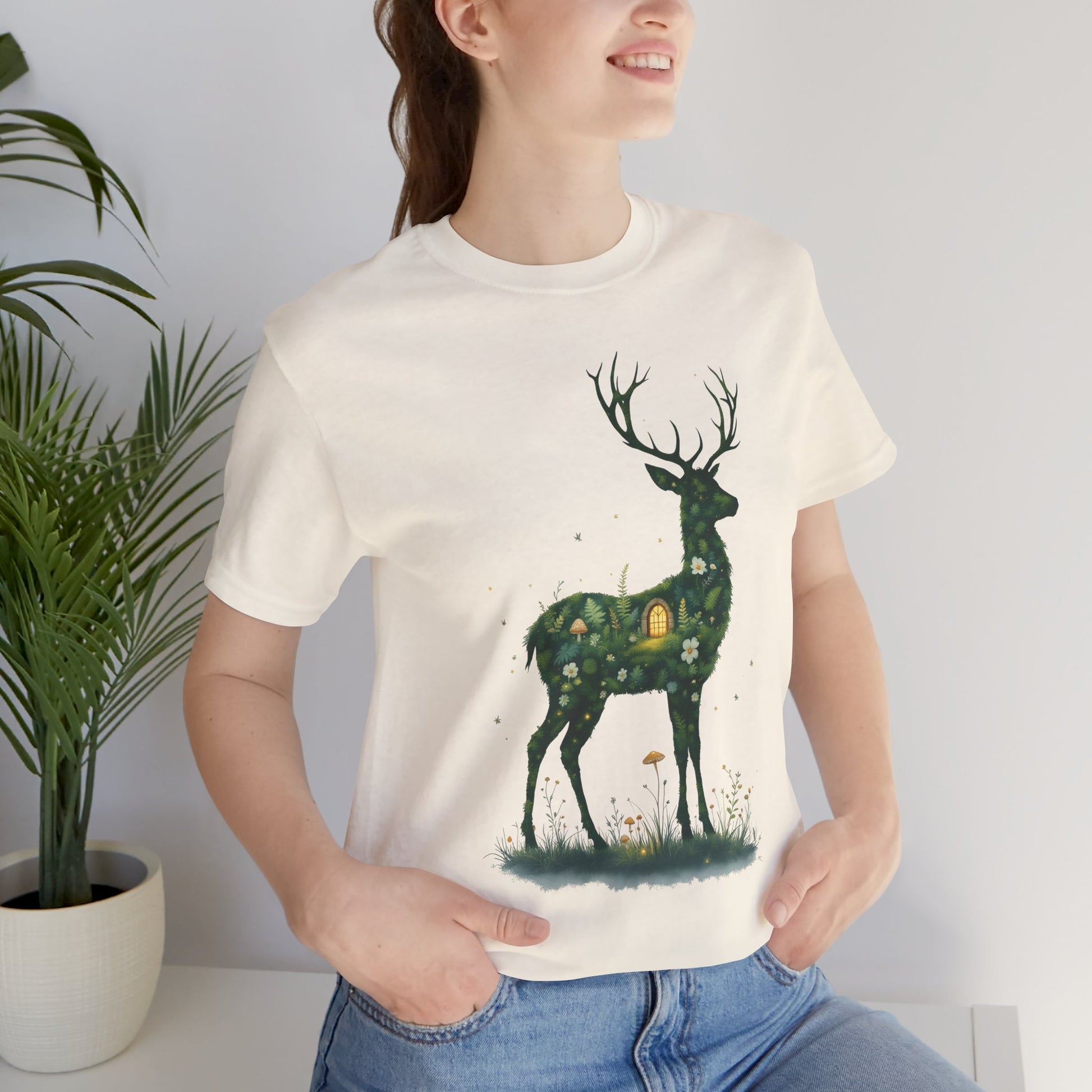 Moss Deer Silhouette Shirt, Forestcore Tee, Botanical Nature Animal Print, Woodland Gift