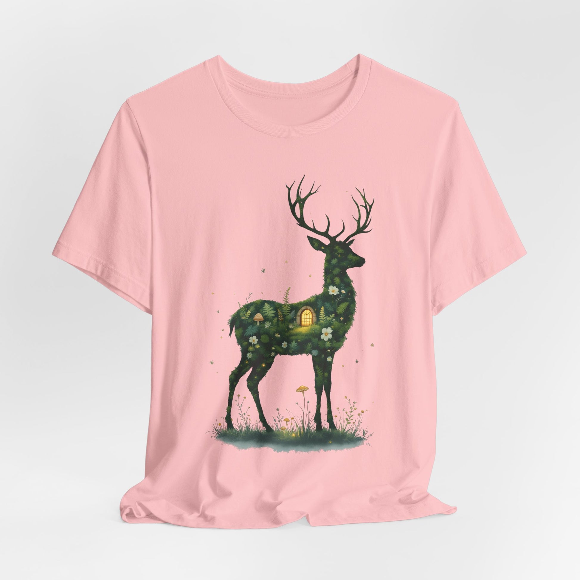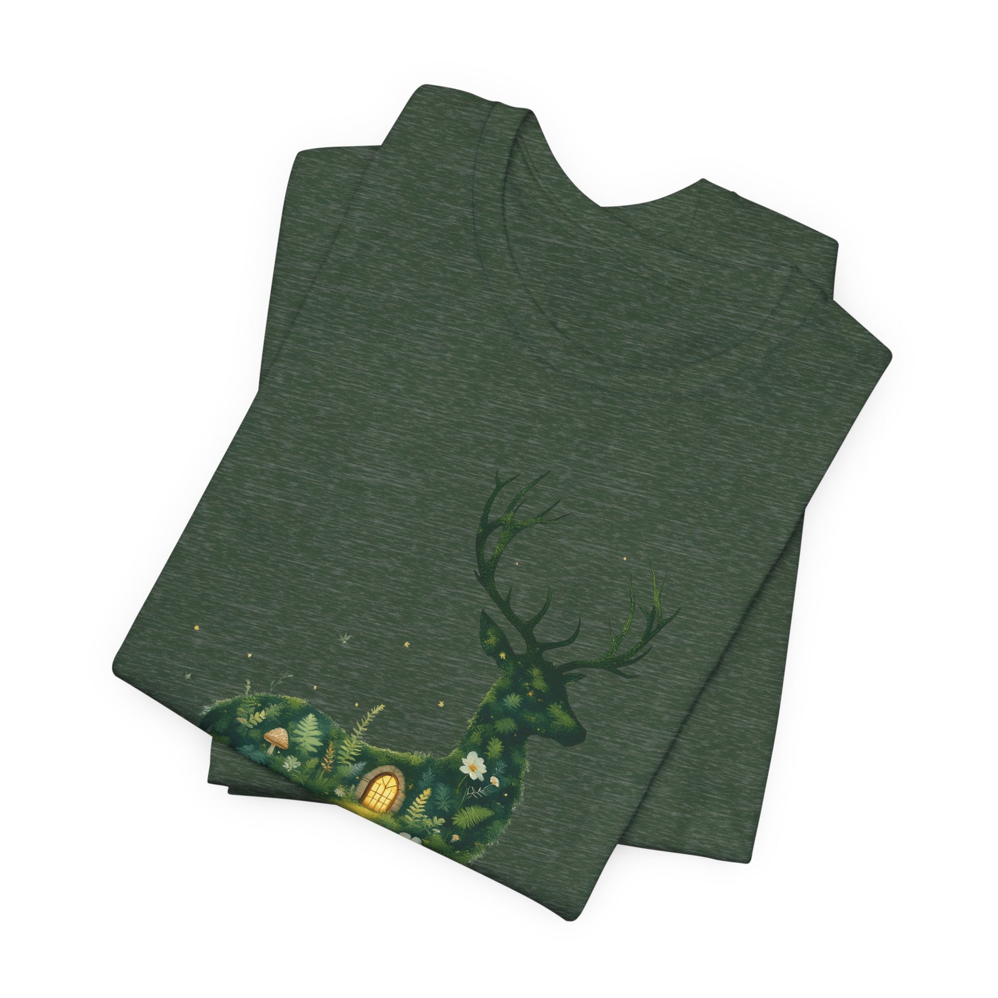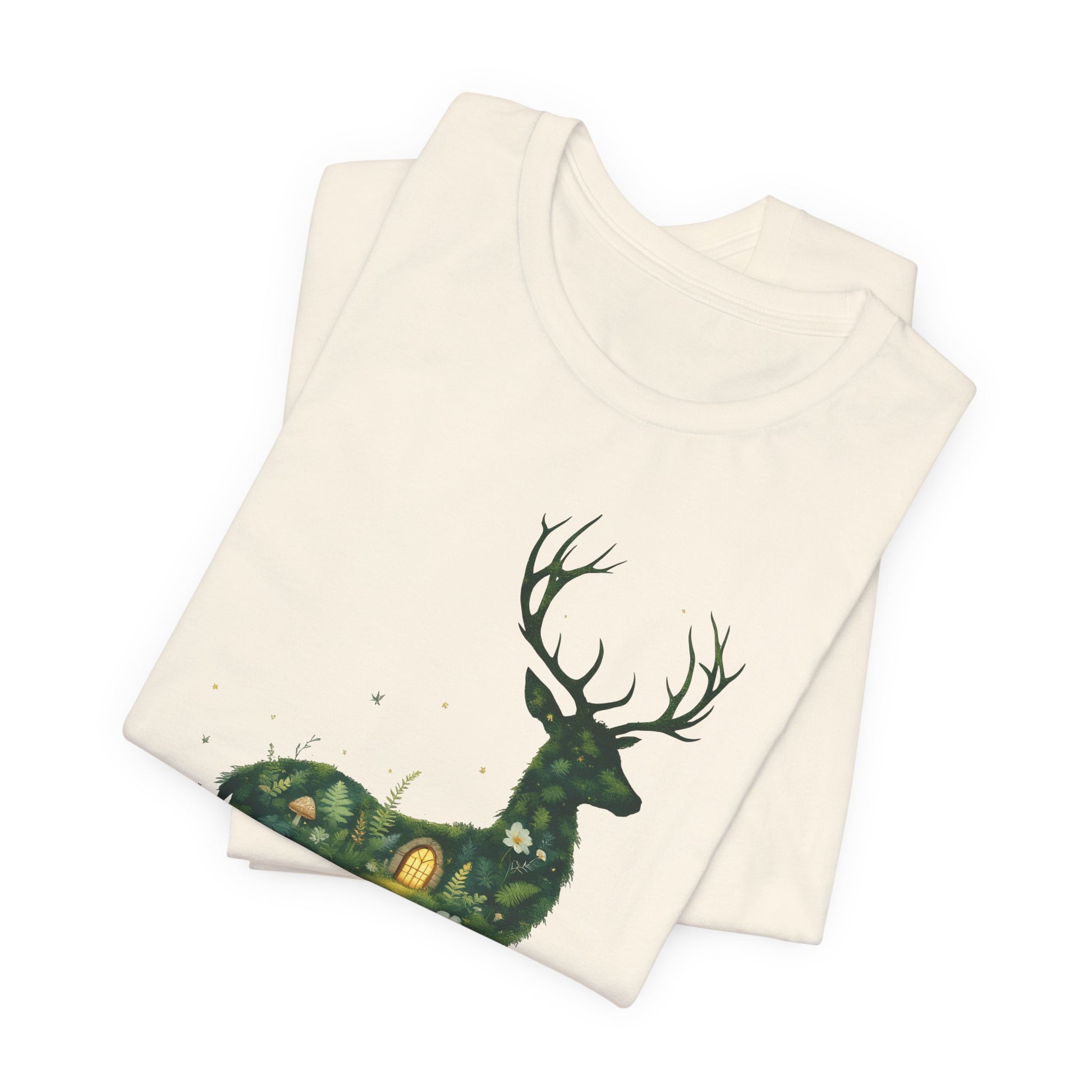 Moss Deer Silhouette Shirt, Forestcore Tee, Botanical Nature Animal Print, Woodland Gift