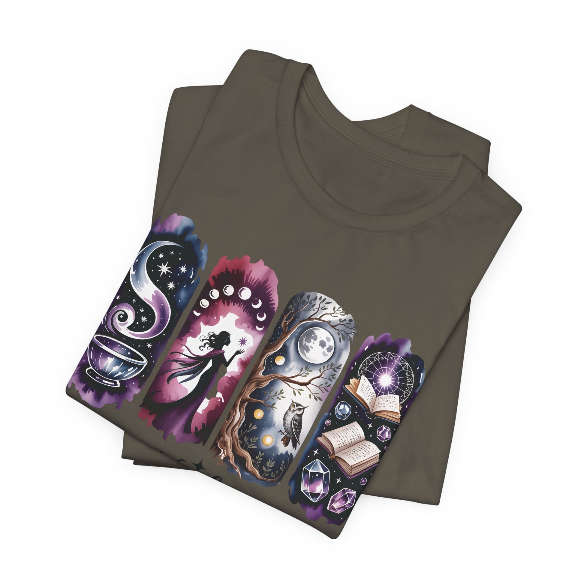 ✨ Why You’ll Love It: Soft, high-quality cotton blend for all-day comfort Striking celestial design with luxe Witchy-Glam details Perfect for moon rituals, festivals, or cozy witchy days Great statement tee for dark feminine wardrobes Available in multiple sizes and colors