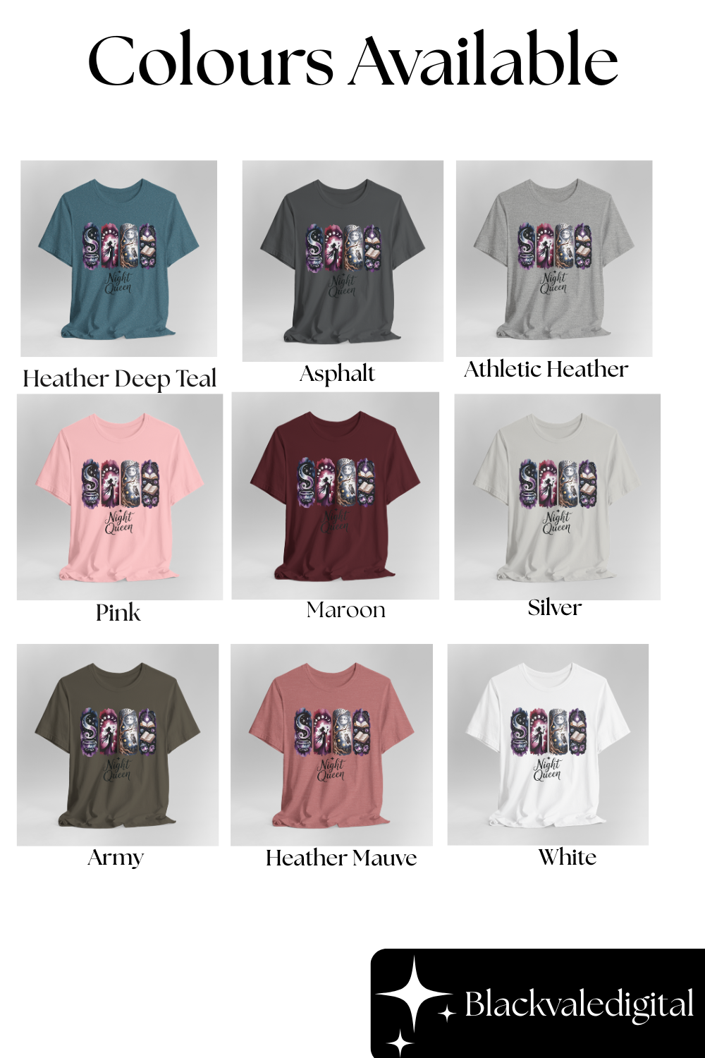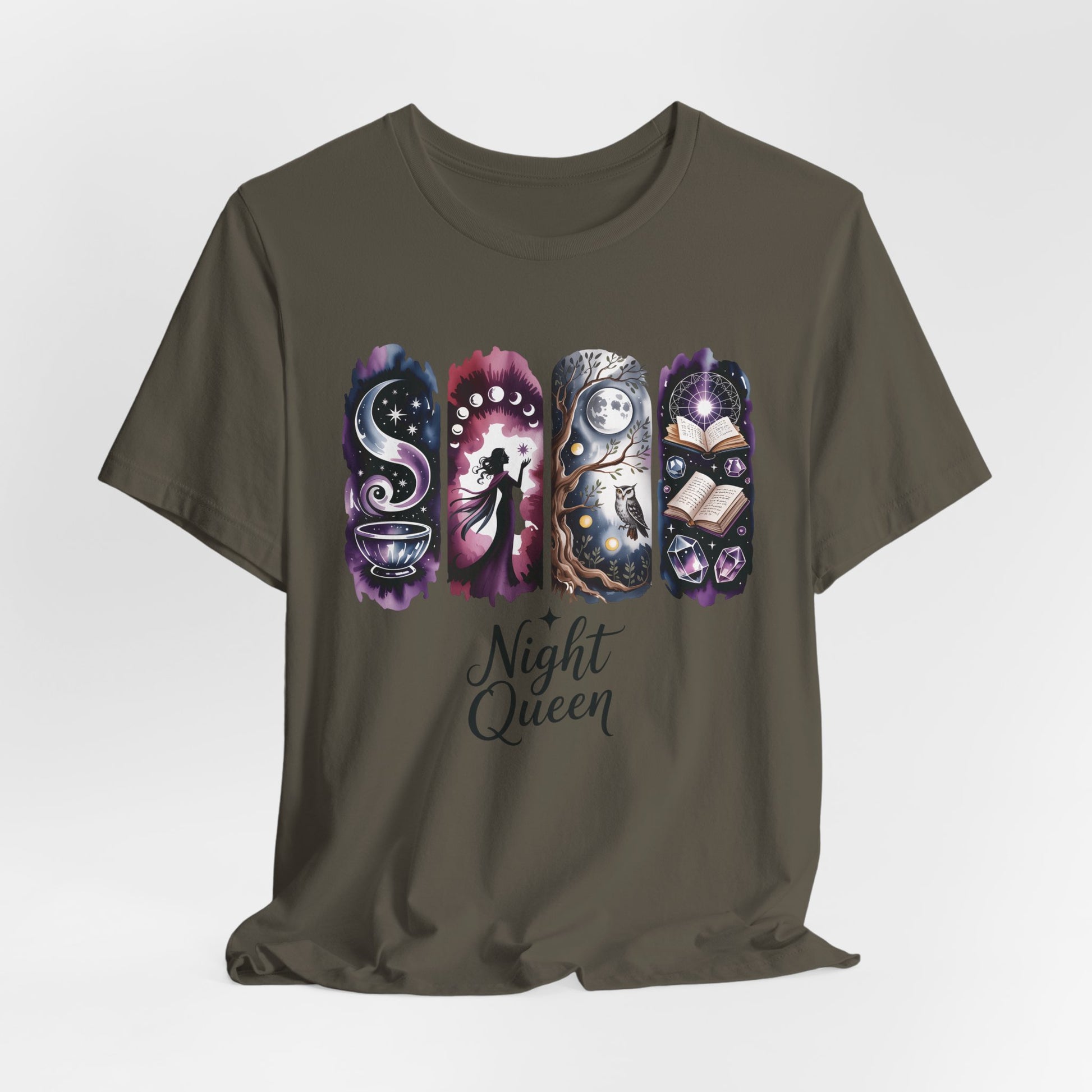 Night Queen Witchy T-Shirt | Witchy Glam Celestial Shirt | Dark Feminine Energy Tee | Moon Goddess Witchcore Graphic Top