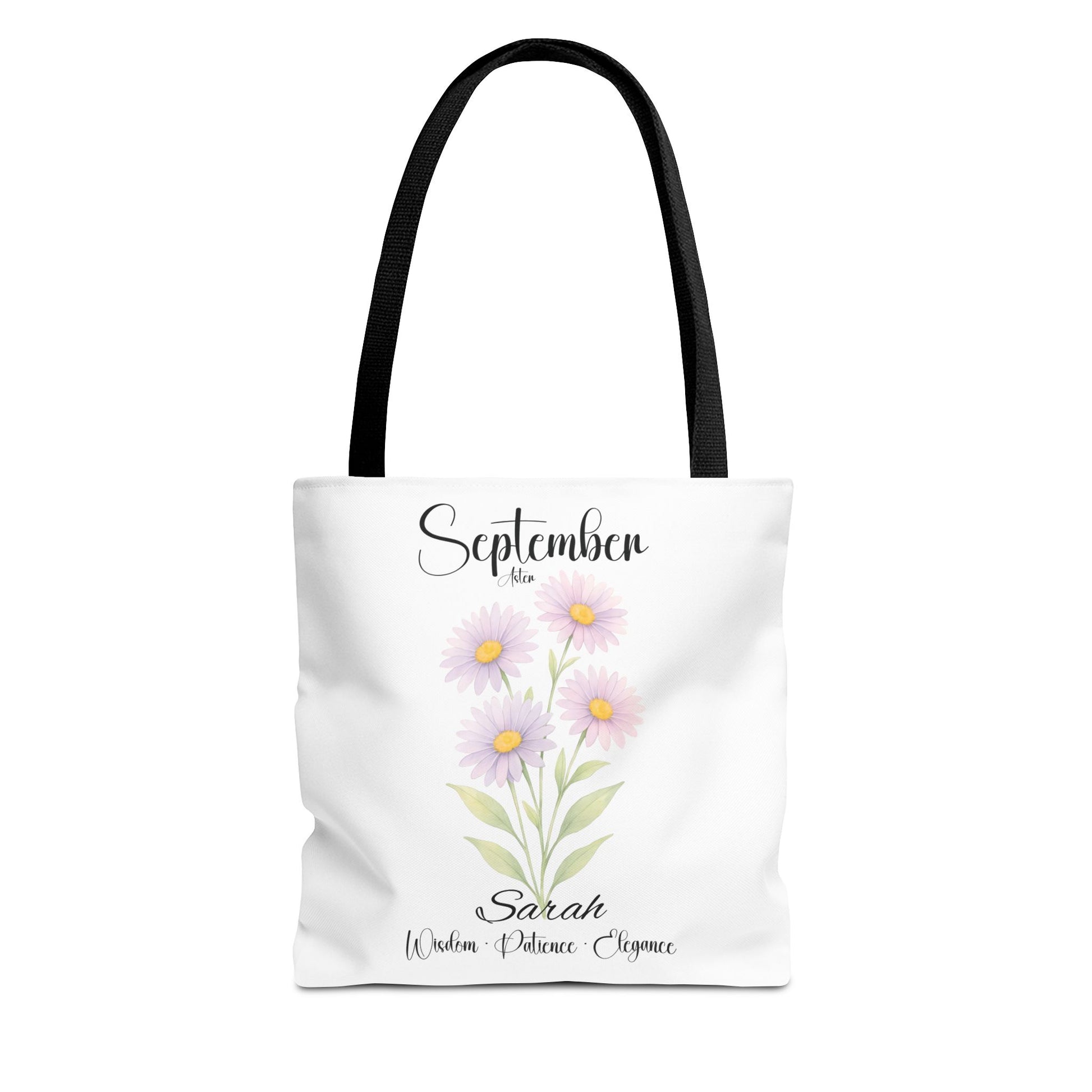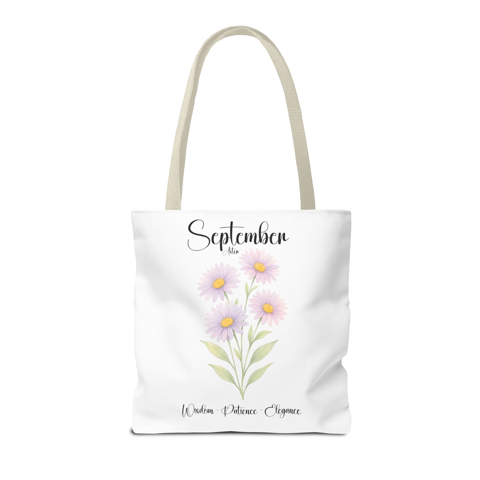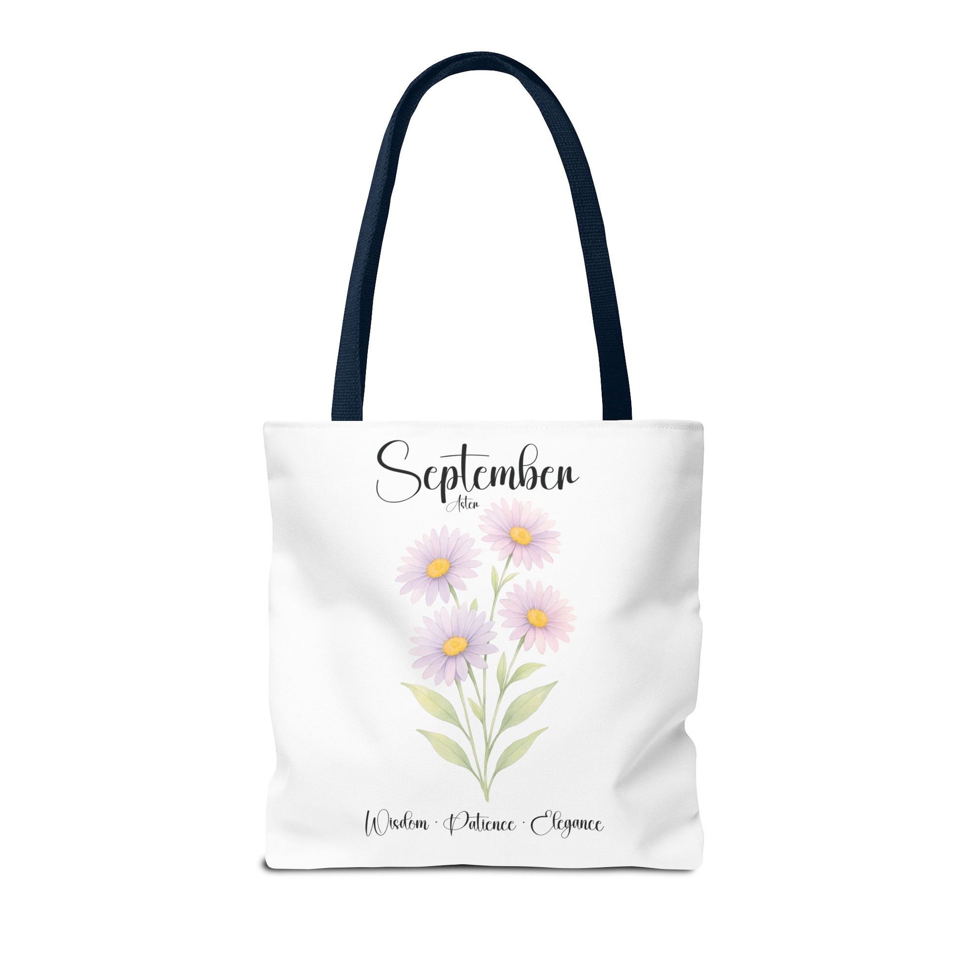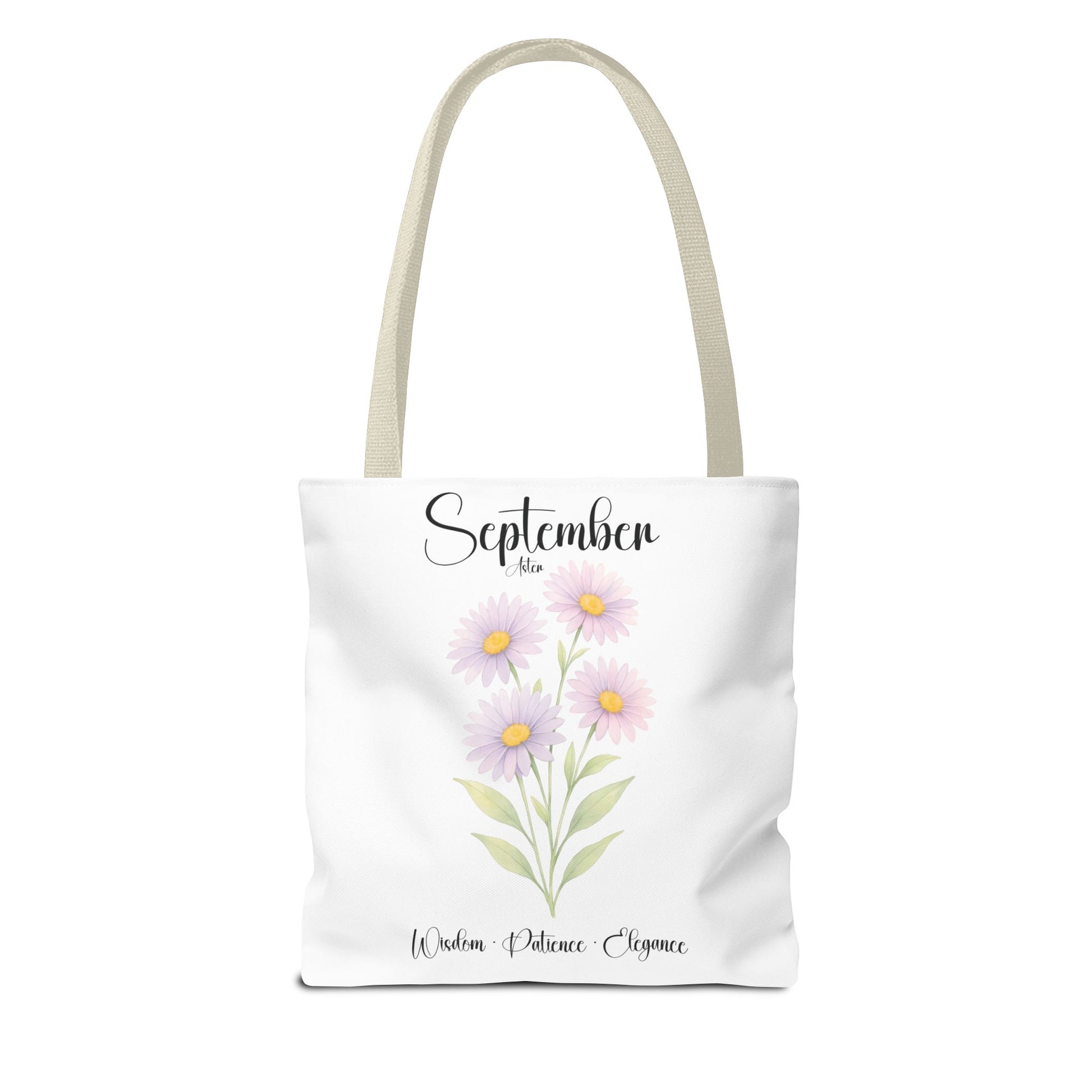 Celebrate her special milestones with our Personalized Birth Month Flower Tote Bag for Her — a meaningful gift for milestone birthdays, best friends, bridesmaids, or as a botanical keepsake. Crafted from lightweight yet sturdy materials, this charming tote features a delicate Aster, symbolizing Wisdom • Patience • Elegance, beautifully printed alongside elegant script. The design includes the month at the top, a single blooming stem, and customizable space beneath for a name and important dates, making it a truly personalized keepsake.