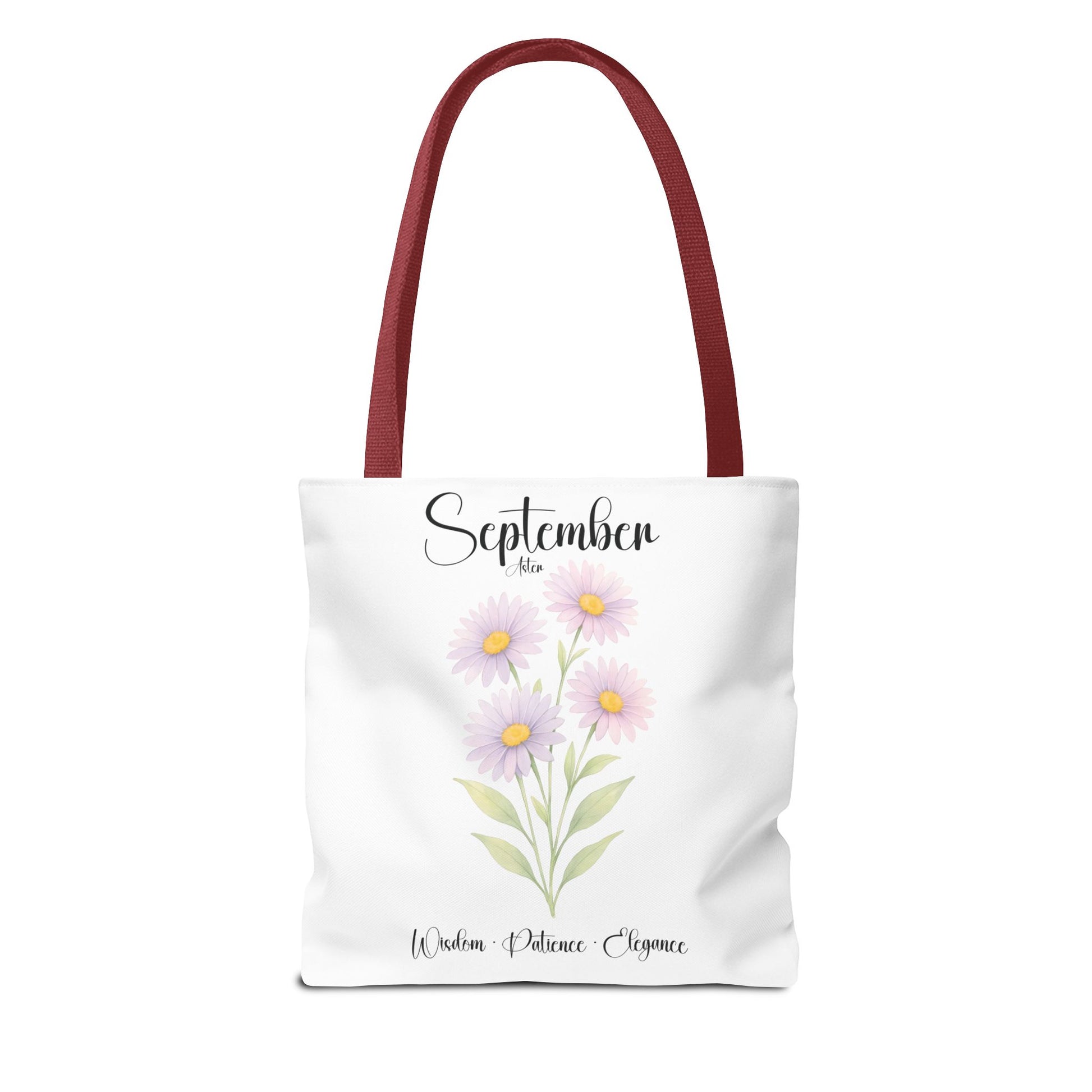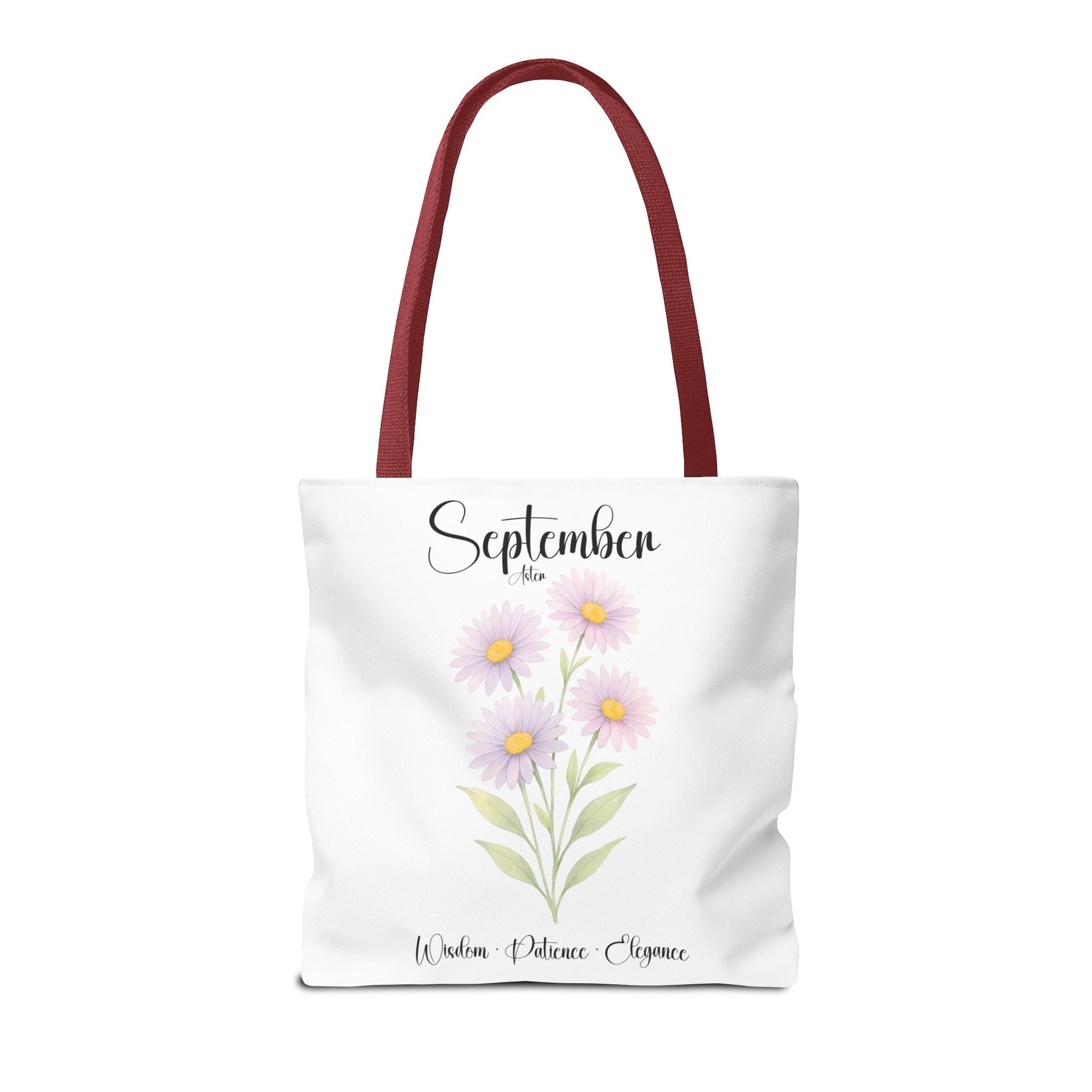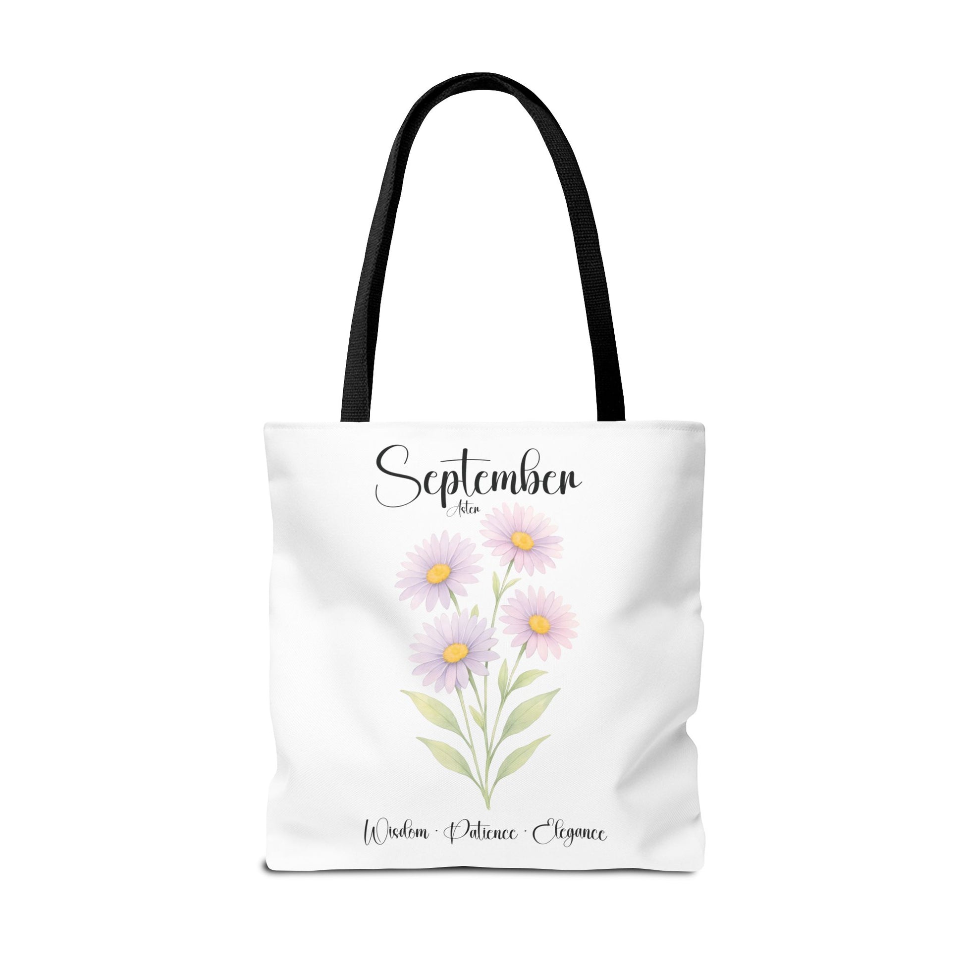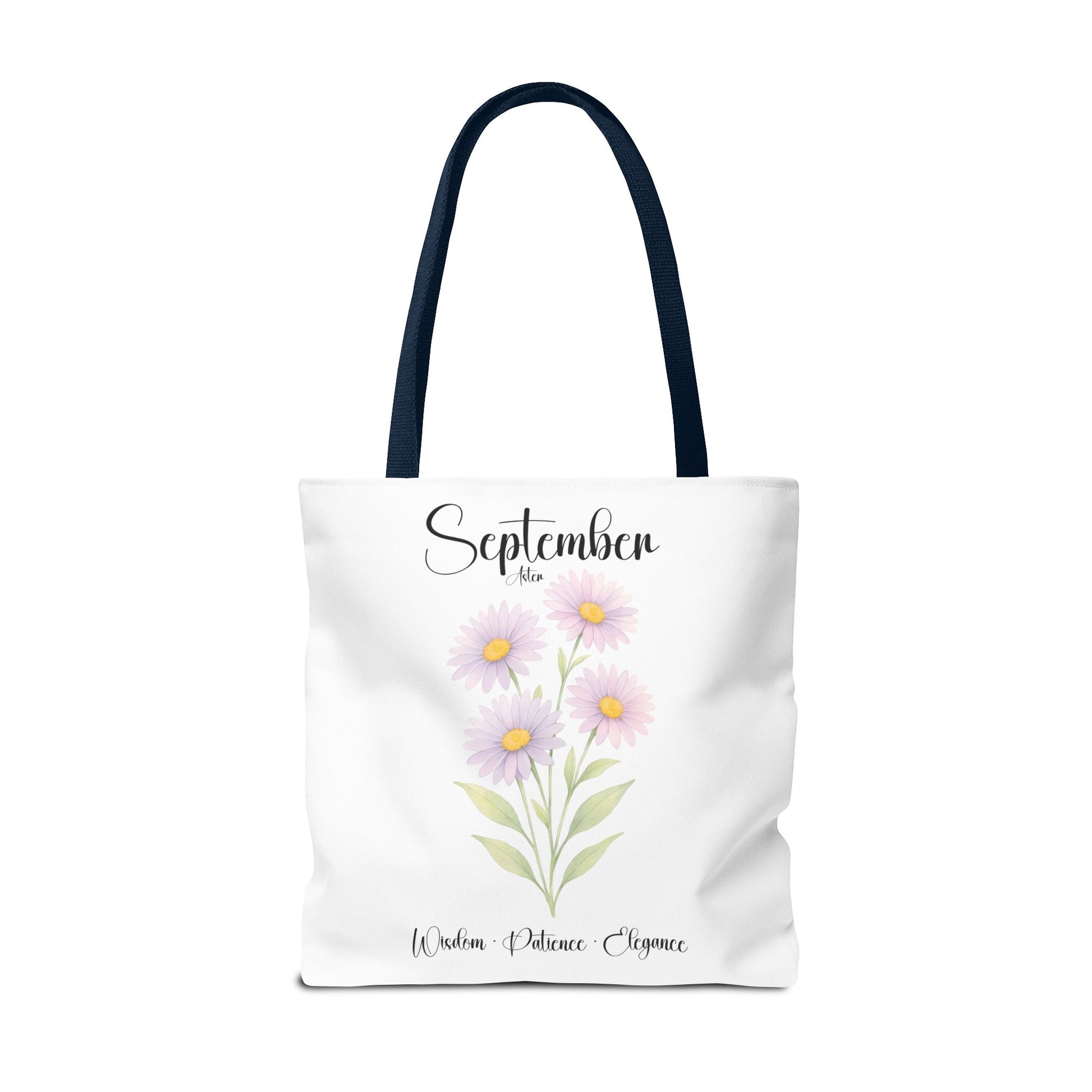 Celebrate her special milestones with our Personalized Birth Month Flower Tote Bag for Her — a meaningful gift for milestone birthdays, best friends, bridesmaids, or as a botanical keepsake. Crafted from lightweight yet sturdy materials, this charming tote features a delicate Aster, symbolizing Wisdom • Patience • Elegance, beautifully printed alongside elegant script. The design includes the month at the top, a single blooming stem, and customizable space beneath for a name and important dates, making it a truly personalized keepsake.