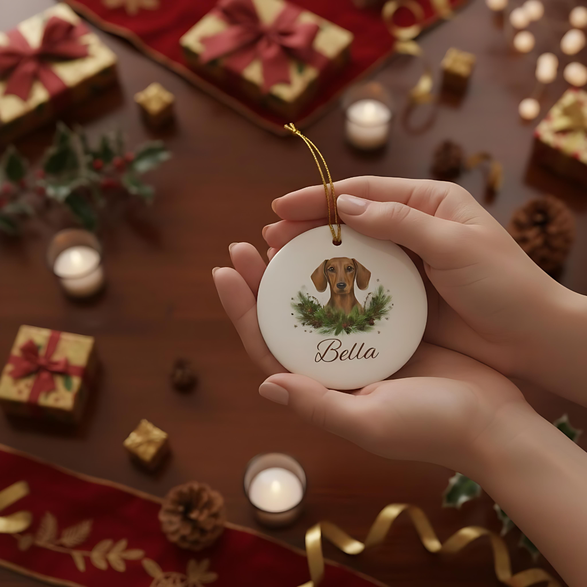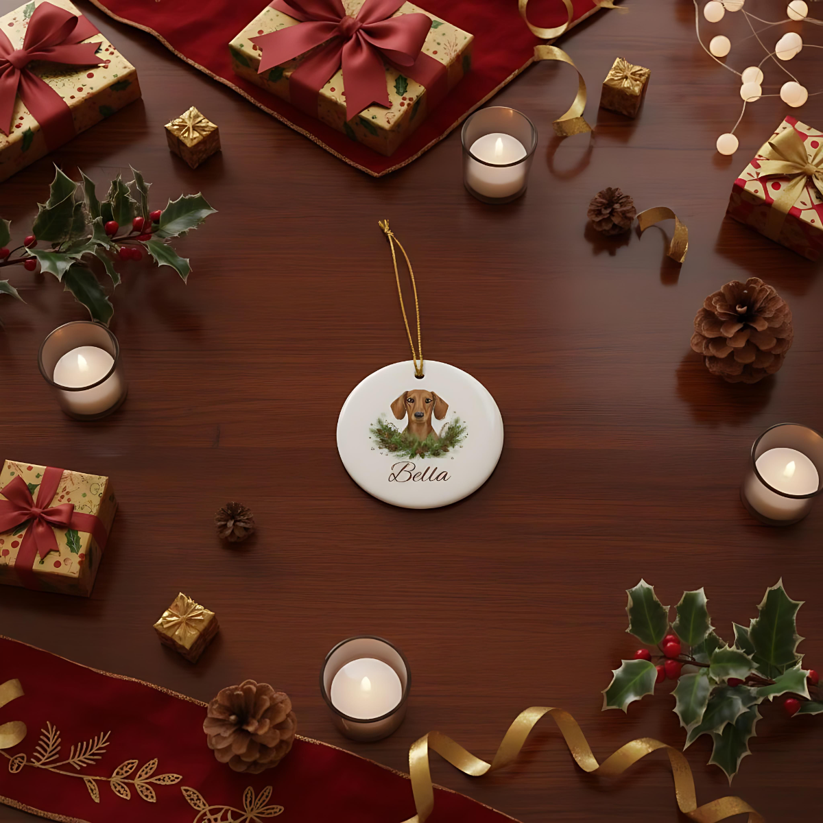 Personalized Dachshund Christmas Ornament | Custom Doxie Dog Name Ceramic Keepsake | Wiener Dog Gift