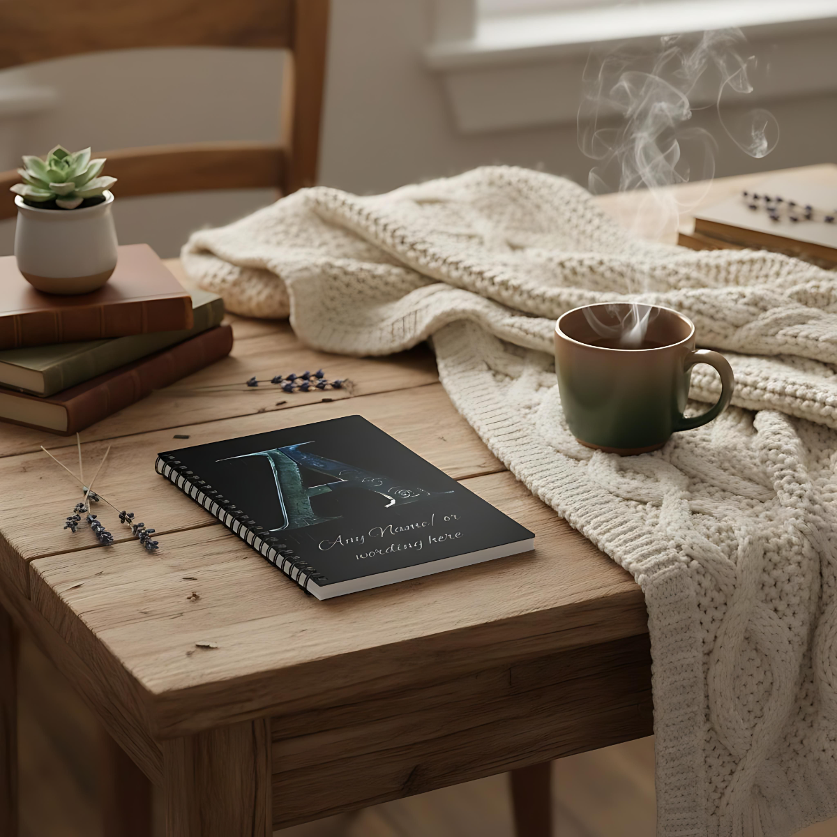 Embark on a mystical journey with our Personalized Norse Witchy Monogram A5 Notebook. This enchanting monogrammed notebook, inspired by Norse pagan traditions, is meticulously crafted to serve as your very own viking notebook or celtic journal. The custom journal cover complements the intricate lettering book design, creating an exquisite spiral bound book that's perfect for jotting down spells in your book of shadows or secrets in a witchcraft grimoire. With your name beautifully etched into this personalized diary, it becomes a grimoire journal that reflects your unique story.