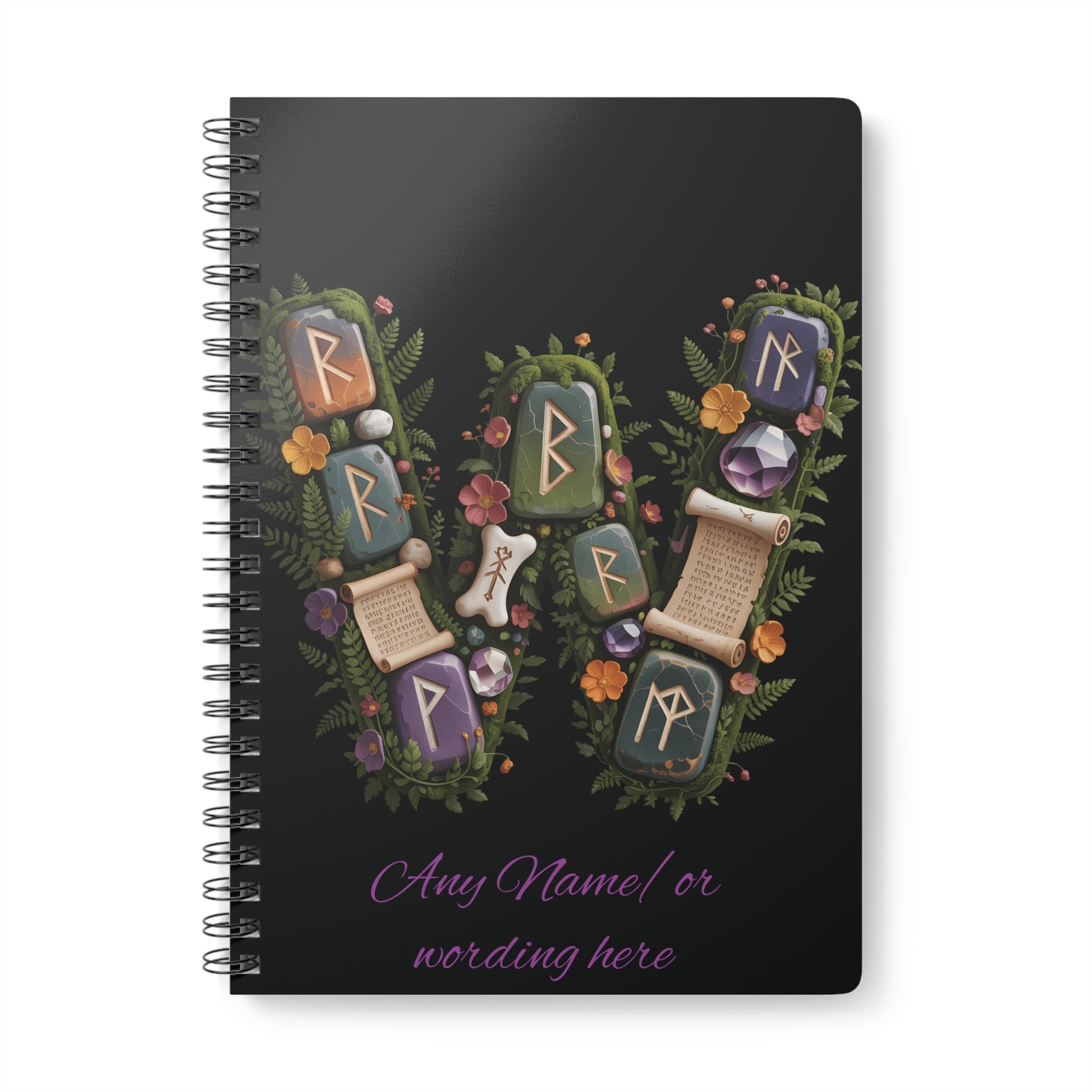 Embark on a mystical journey with our Personalized Norse Witchy Monogram A5 Notebook. This enchanting monogrammed notebook, inspired by Norse pagan traditions, is meticulously crafted to serve as your very own viking notebook or celtic journal. The custom journal cover complements the intricate lettering book design, creating an exquisite spiral bound book that's perfect for jotting down spells in your book of shadows or secrets in a witchcraft grimoire. With your name beautifully etched into this personalized diary, it becomes a grimoire journal that reflects your unique story.