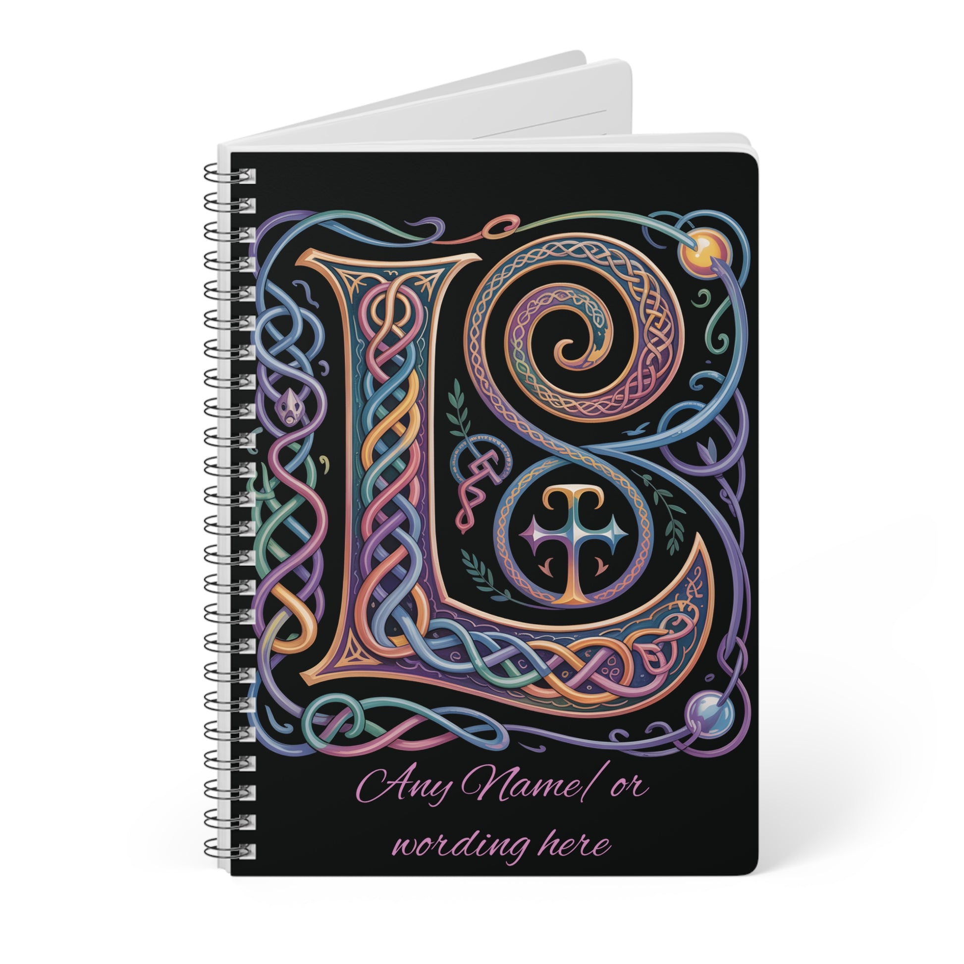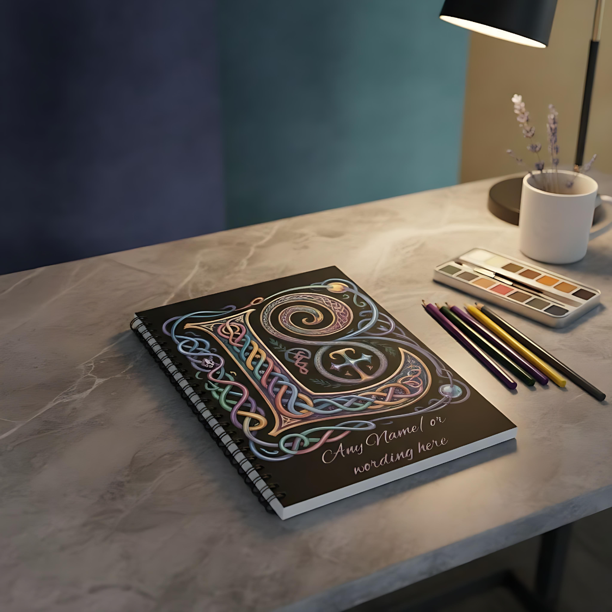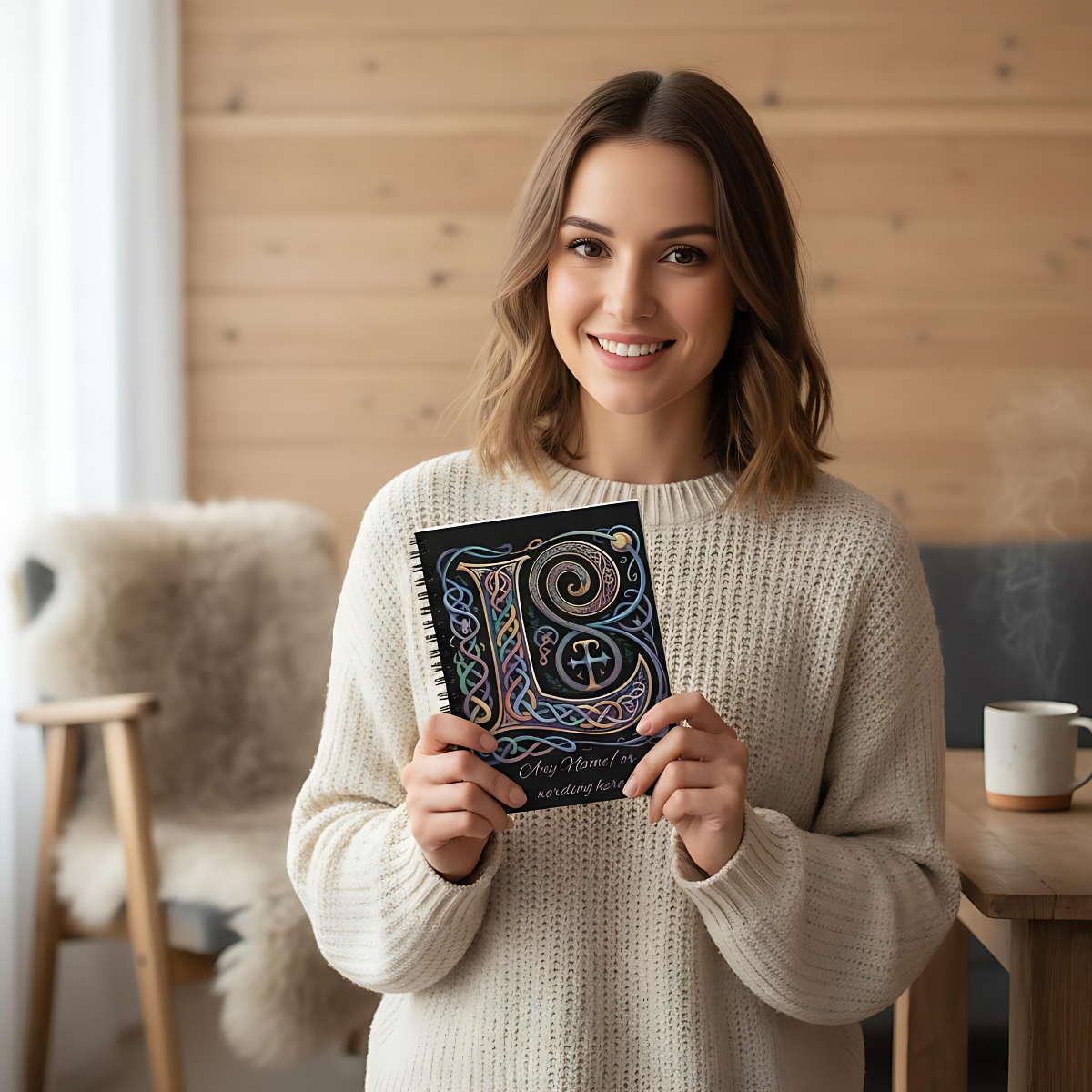Embark on a mystical journey with our Personalized Norse Witchy Monogram A5 Notebook. This enchanting monogrammed notebook, inspired by Norse pagan traditions, is meticulously crafted to serve as your very own viking notebook or celtic journal. The custom journal cover complements the intricate lettering book design, creating an exquisite spiral bound book that's perfect for jotting down spells in your book of shadows or secrets in a witchcraft grimoire. With your name beautifully etched into this personalized diary, it becomes a grimoire journal that reflects your unique story.