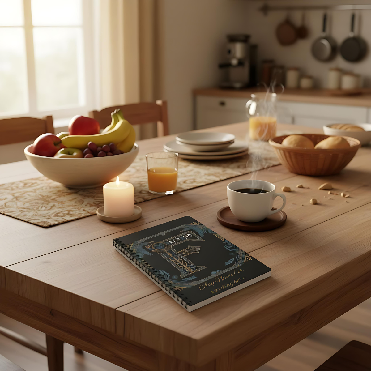 Embark on a mystical journey with our Personalized Norse Witchy Monogram A5 Notebook. This enchanting monogrammed notebook, inspired by Norse pagan traditions, is meticulously crafted to serve as your very own viking notebook or celtic journal. The custom journal cover complements the intricate lettering book design, creating an exquisite spiral bound book that's perfect for jotting down spells in your book of shadows or secrets in a witchcraft grimoire. With your name beautifully etched into this personalized diary, it becomes a grimoire journal that reflects your unique story.