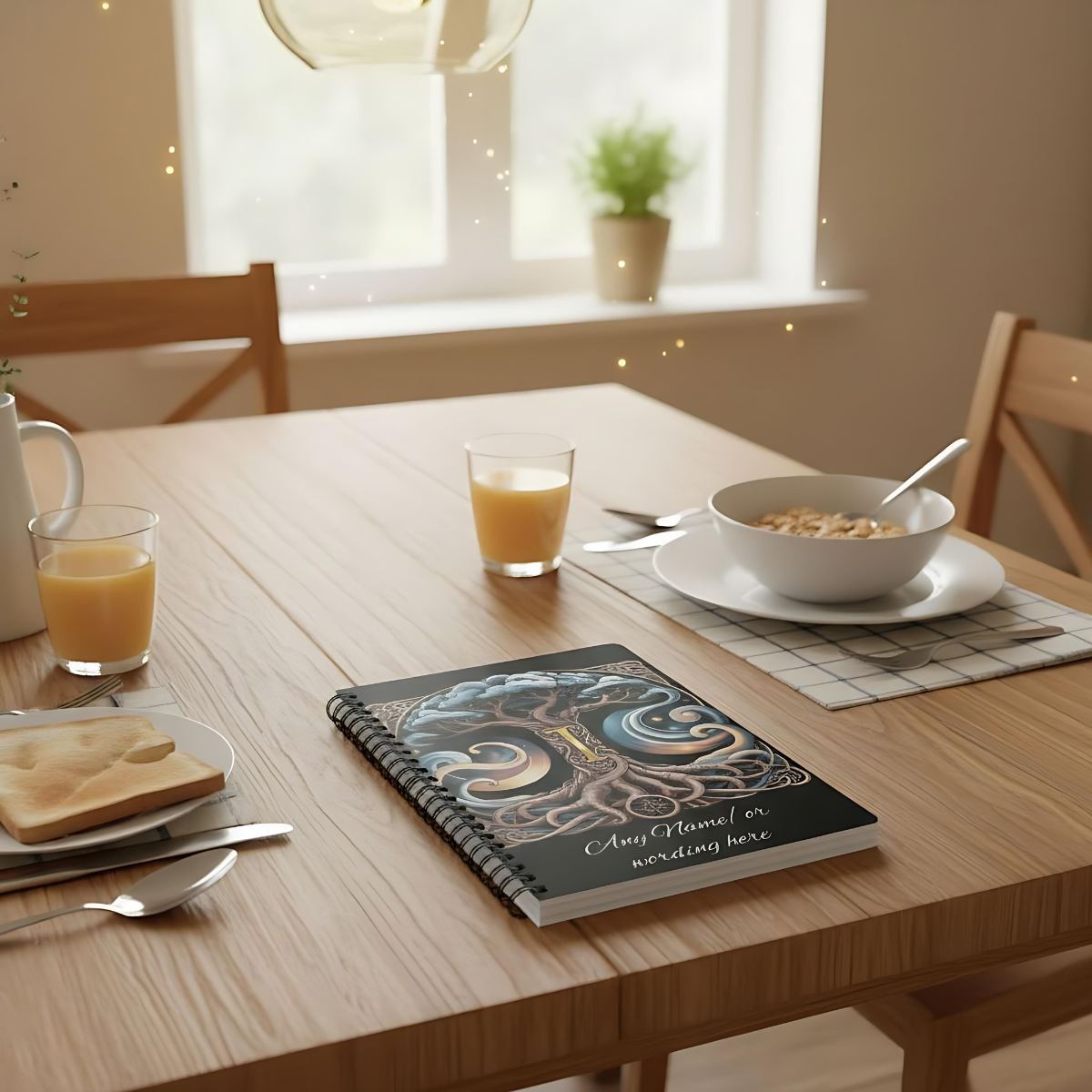Embark on a mystical journey with our Personalized Norse Witchy Monogram A5 Notebook. This enchanting monogrammed notebook, inspired by Norse pagan traditions, is meticulously crafted to serve as your very own viking notebook or celtic journal. The custom journal cover complements the intricate lettering book design, creating an exquisite spiral bound book that's perfect for jotting down spells in your book of shadows or secrets in a witchcraft grimoire. With your name beautifully etched into this personalized diary, it becomes a grimoire journal that reflects your unique story.