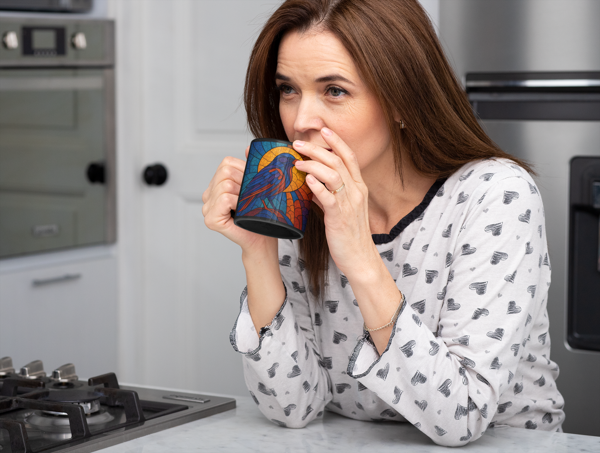 Raven Stained-Glass Effect Mug, This raven mug isn't just a drinkware item; it's an exquisite raven gift for those who cherish the mystique of these storied creatures.