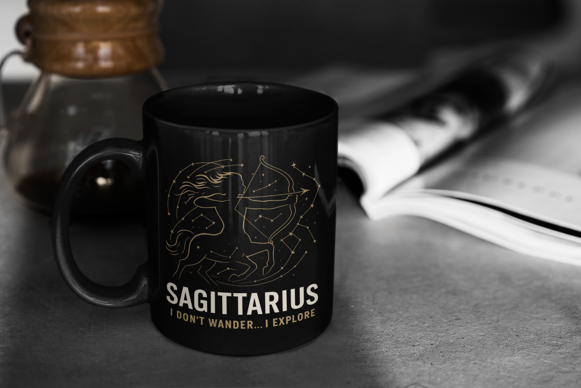Embark on a celestial journey with our Sagittarius astrology mug, a perfect blend of artistry and inspiration. This zodiac mug captures the free spirit of the Sagittarius sign, with its intricately detailed constellation design shimmering against the night sky backdrop. Whether it's a birthday in November or December, this Sagittarius zodiac cup makes a delightful gift for any astrology lover. Elevate your daily ritual with every sip, and let this constellation mug be a beacon of your adventurous spirit.