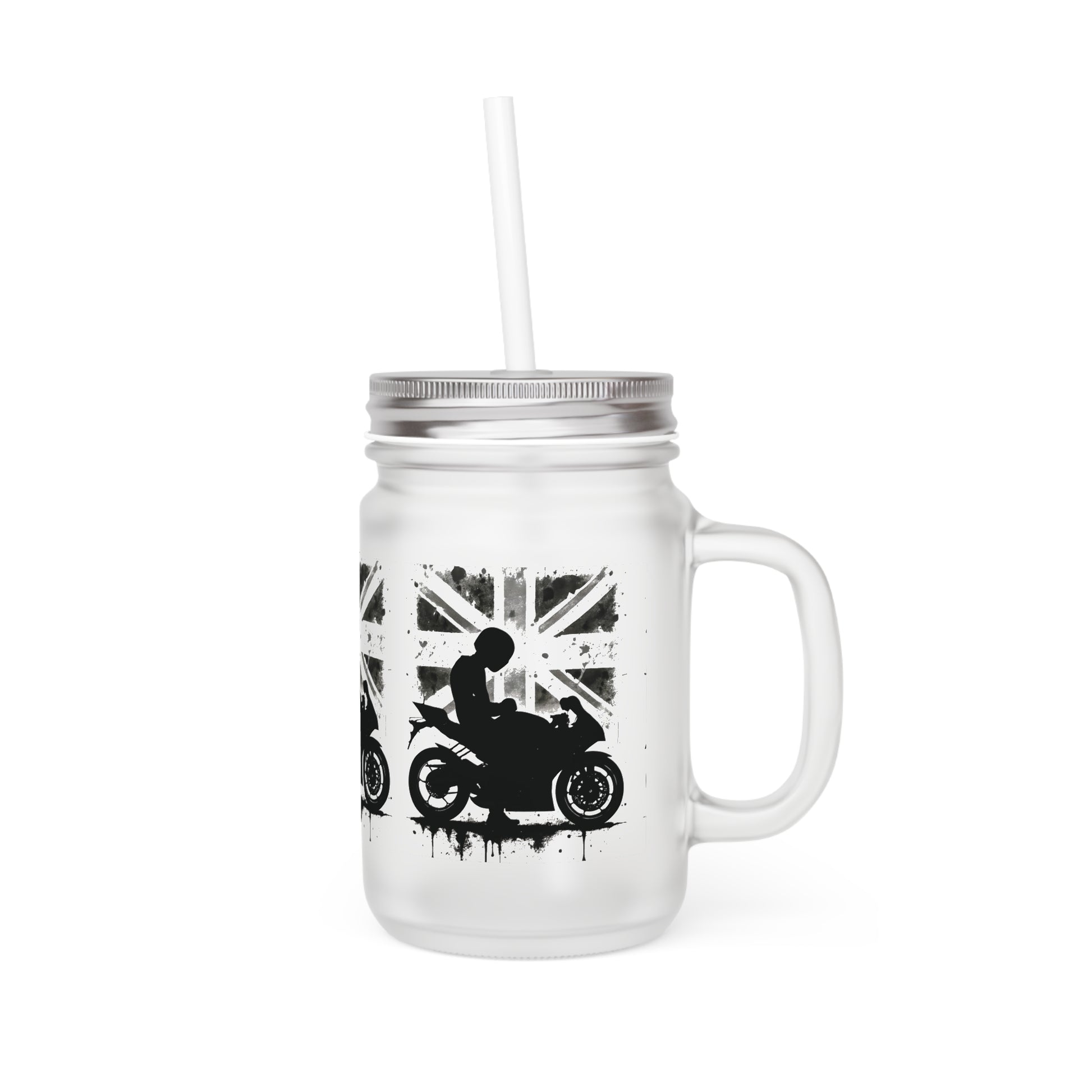 Union Jack Mason Jar with Straw, great Biker Dad Gift idea.