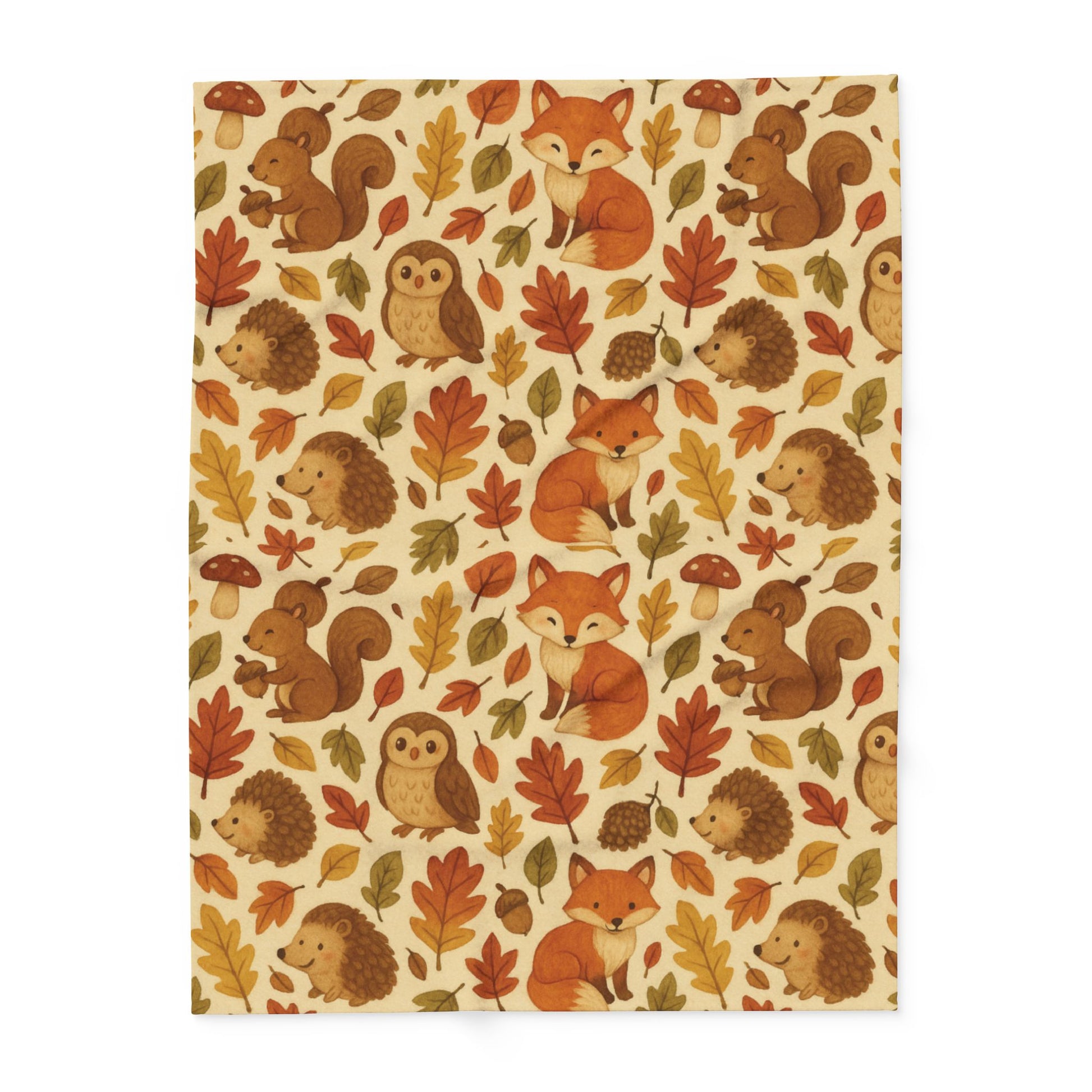 Wrap yourself in the enchanting embrace of our Woodland Friends Autumnal Blanket, where the magic of nature meets the cozy warmth of home. This fall throw blanket transforms any space into an autumnal haven, draped in autumnal colors and tones that echo the beauty of the forest. Featuring delightful woodland creatures, this sofa blanket is the perfect accent to your autumnal decor, ideal for evenings when the chill of the season invites you to snuggle in comfort. Embrace the charm and coziness of autumn with every touch of this snug and inviting piece.