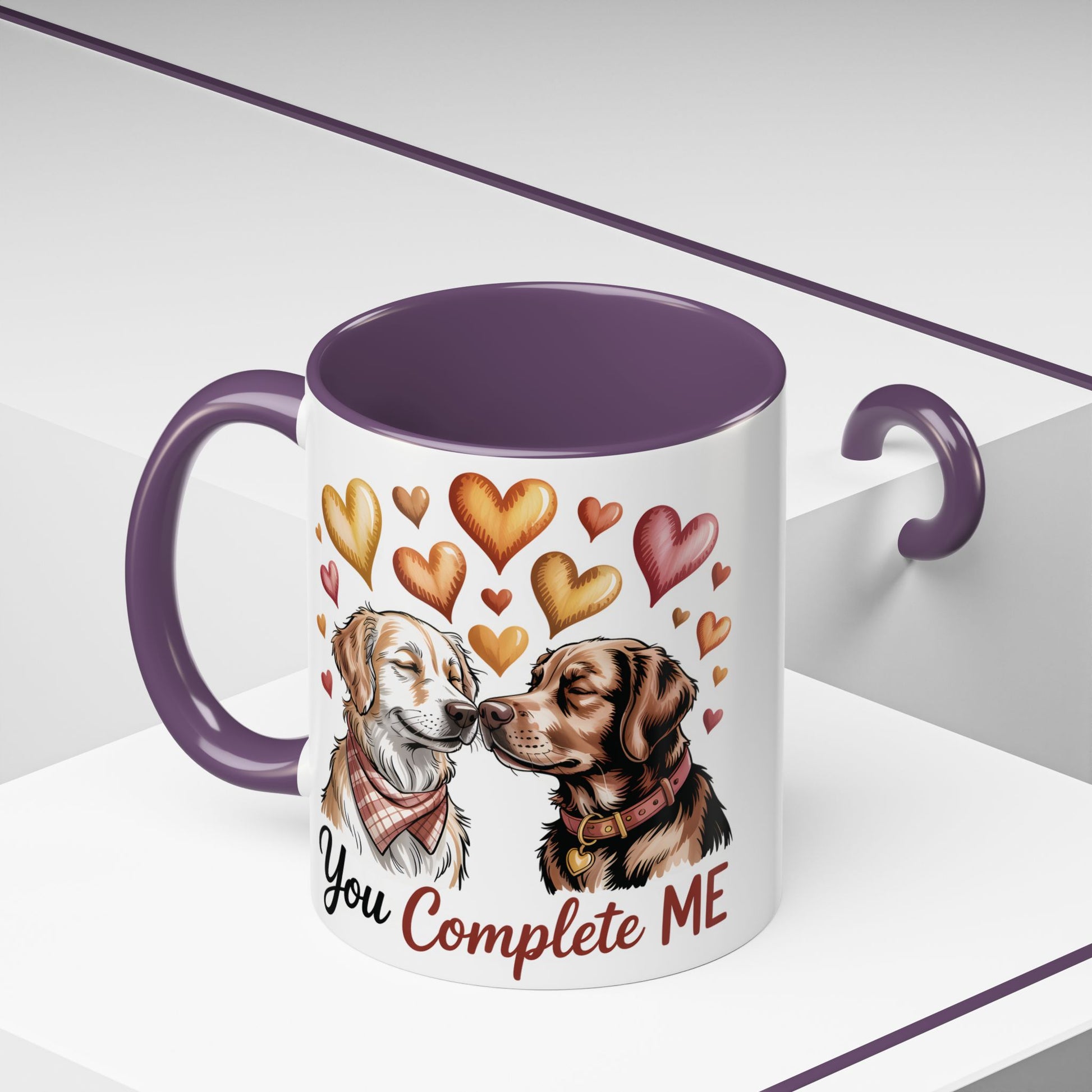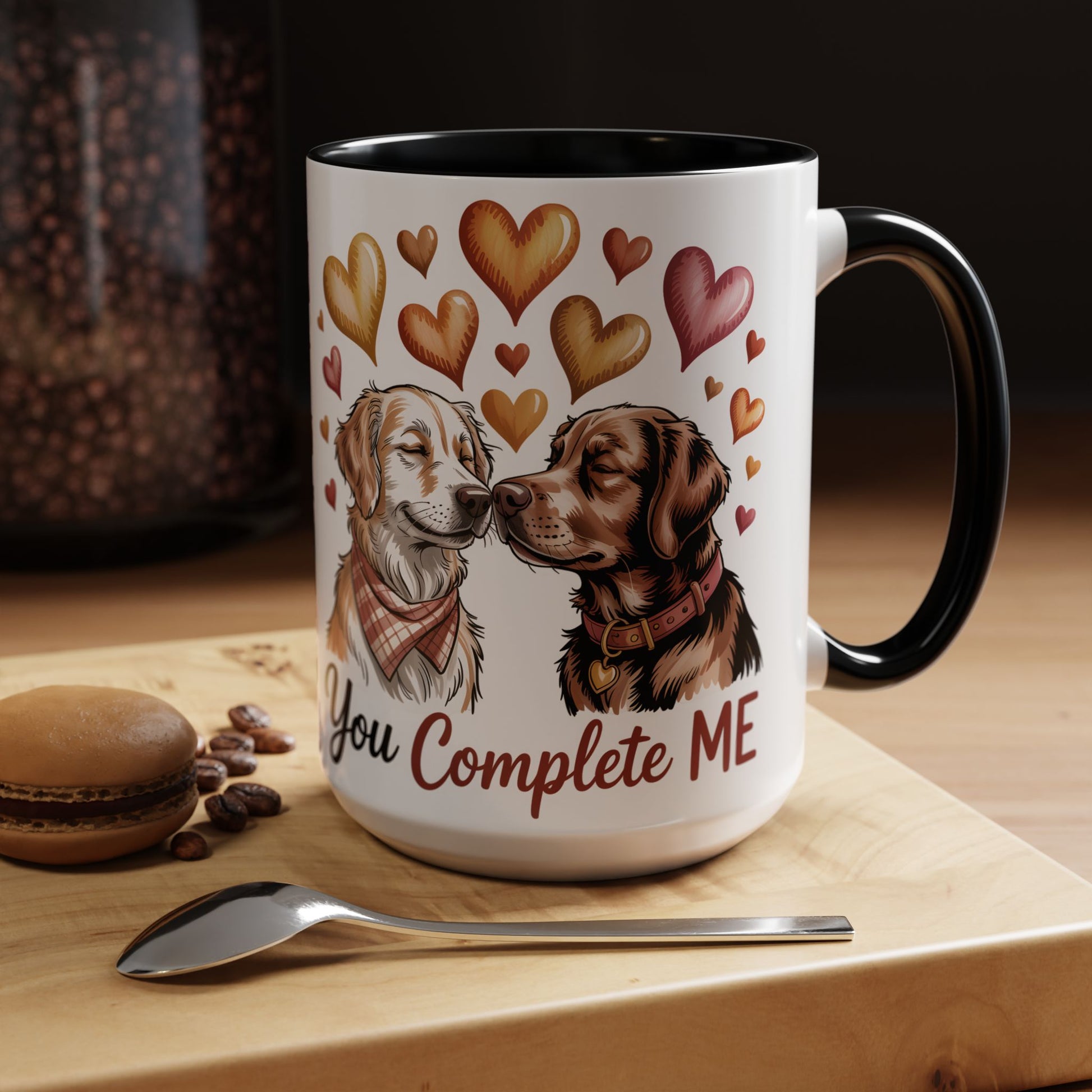 Celebrate love in the cutest way with this charming dog couple mug, featuring two adorable pups surrounded by hearts and the sweet phrase “You Complete Me.” Perfect for dog owners, couples, or anyone who loves heartfelt, pet-inspired gifts, this mug brings warmth and joy to every sip. Whether you’re shopping for Valentine’s Day, an anniversary, a birthday, or a just-because surprise, this mug makes a beautiful and thoughtful present for your partner, spouse, or dog-loving friend. With vibrant artwork, a glossy finish, and a heart-warming design, this cup is guaranteed to make them smile.